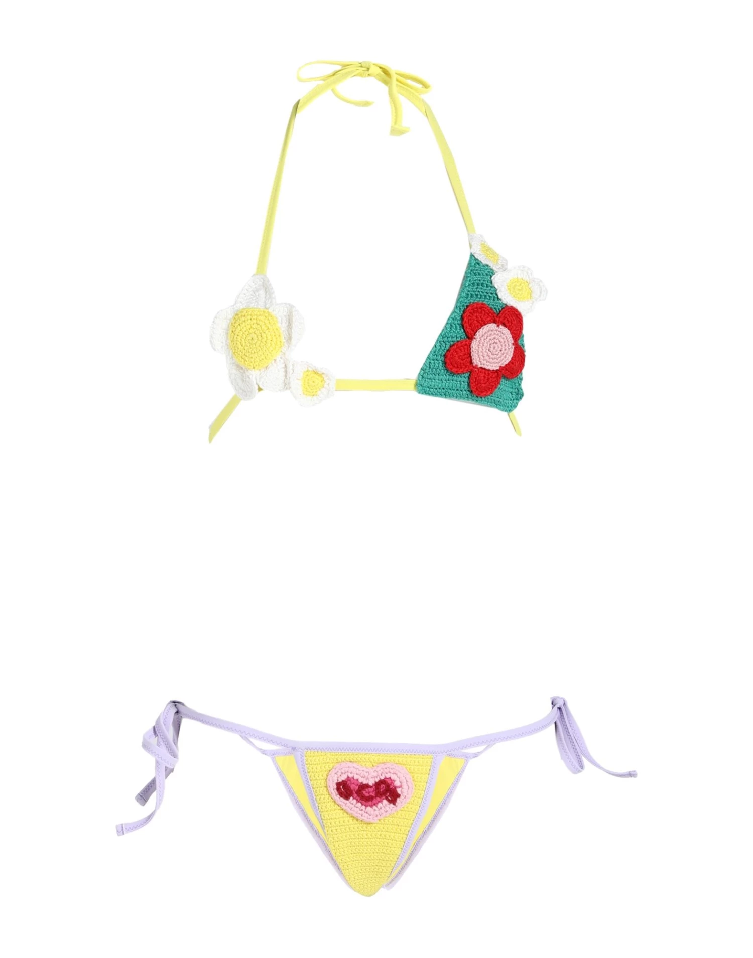 lace, no appliqués, floral design, self-tie closure, no pockets, stretch, 2-piece set, partially lined interior