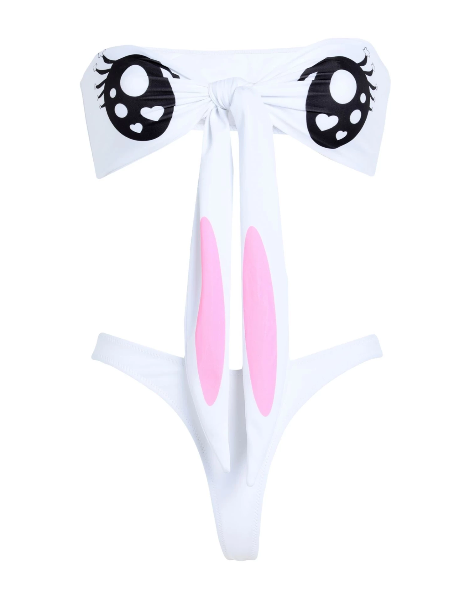 synthetic jersey, brand logo, multicolor pattern, inside with stays, self-tie closure, stretch