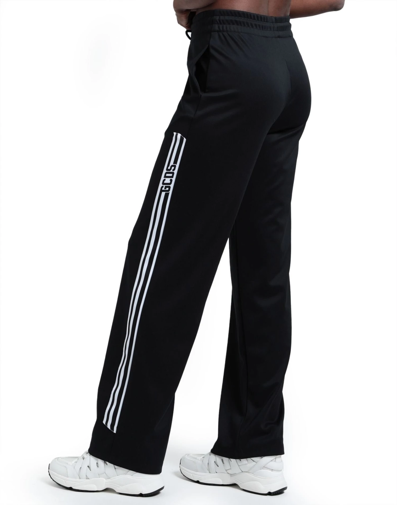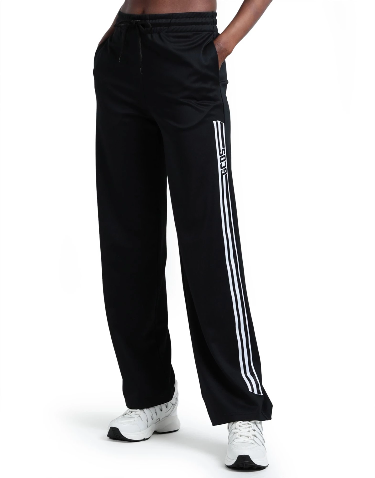 jersey, side seam stripes, brand logo, solid colour with appliqués, high waisted, elasticized waist, straight leg, comfort fit, drawstring closure, multipockets, stretch