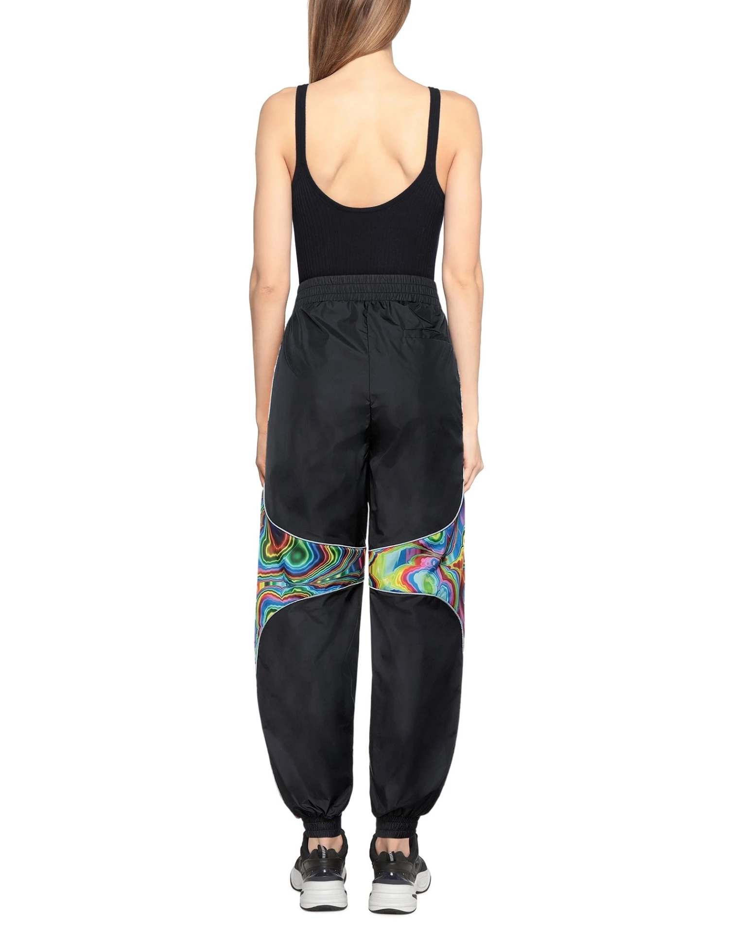 techno fabric, brand logo, multicolor pattern, high waisted, elasticized waist, tapered leg, comfort fit, unlined, multipockets