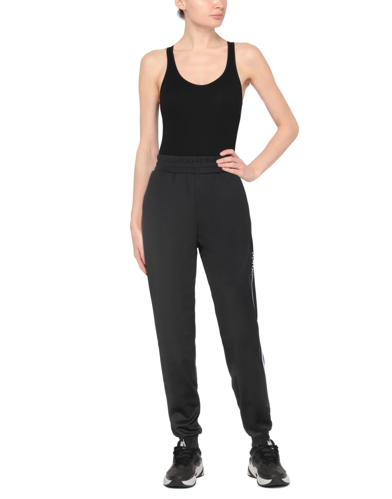 jersey, solid color, logo, side seam stripes, mid rise, comfort fit, tapered leg, elasticized waist, multipockets