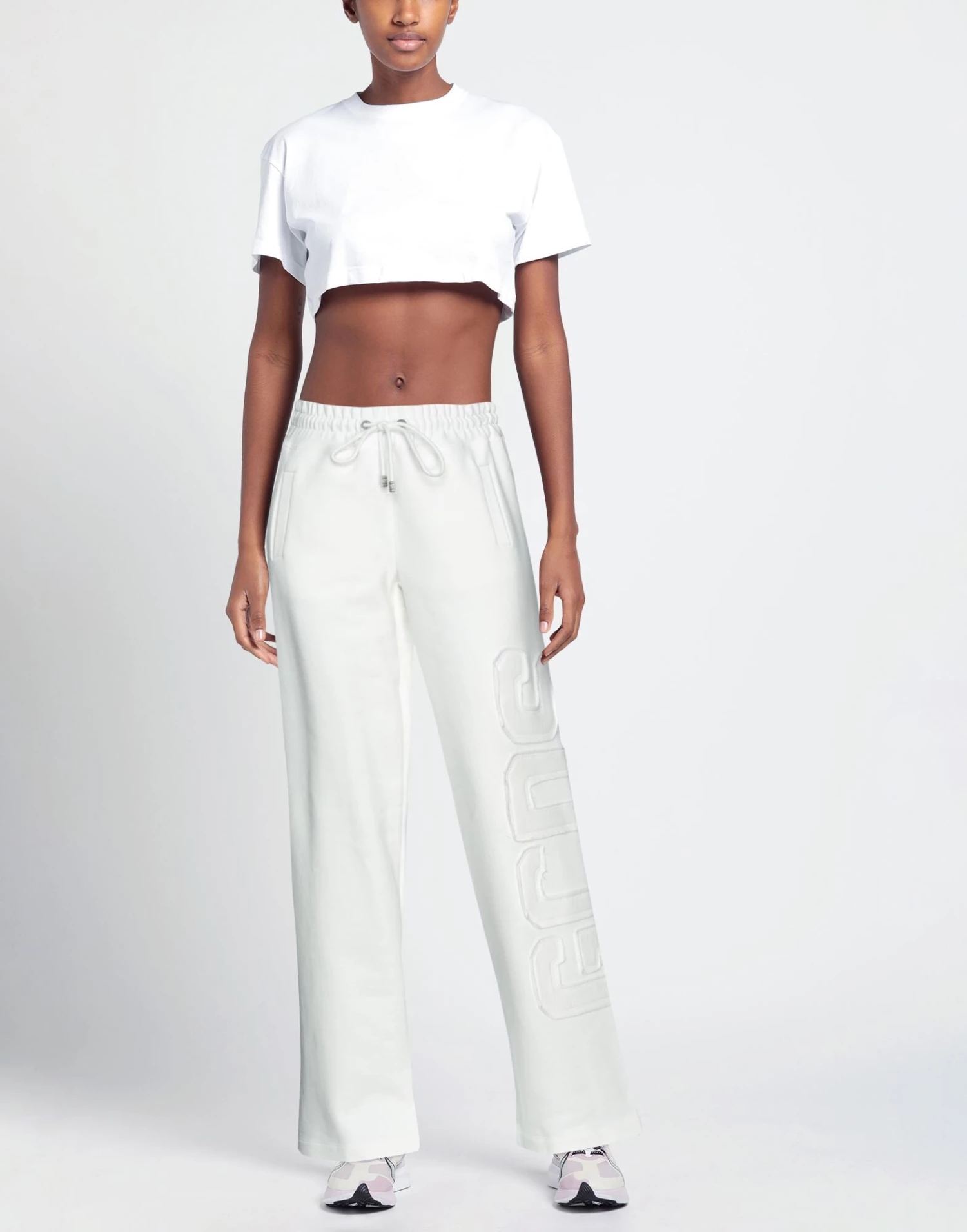 sweatshirt fleece, brand logo, solid color, high waisted, regular fit, drawstring closure, multipockets, straight leg