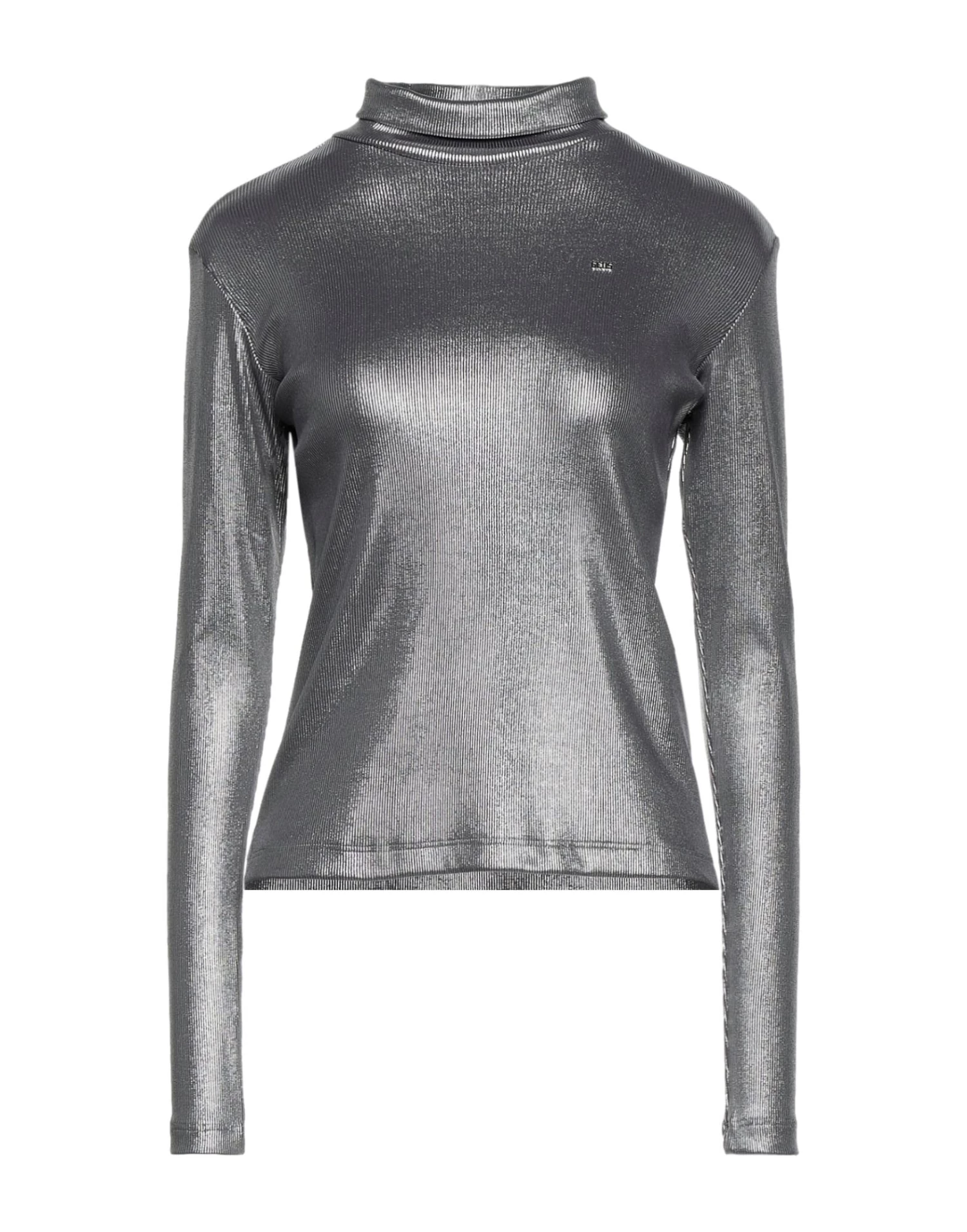 jersey, laminated effect, brand logo, solid color, turtleneck, long sleeves, no pockets, wash at 30° c, do not dry clean, do not bleach, do not tumble dry, iron at 110° c max, stretch