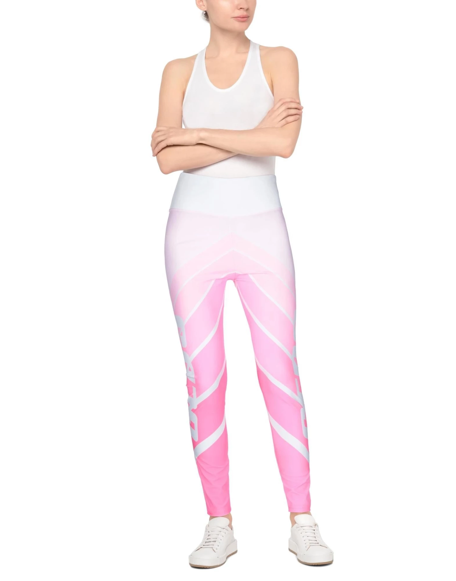 synthetic jersey, multicolor pattern, logo, high waisted, straight leg, slim fit, elasticized waist, no pockets, stretch