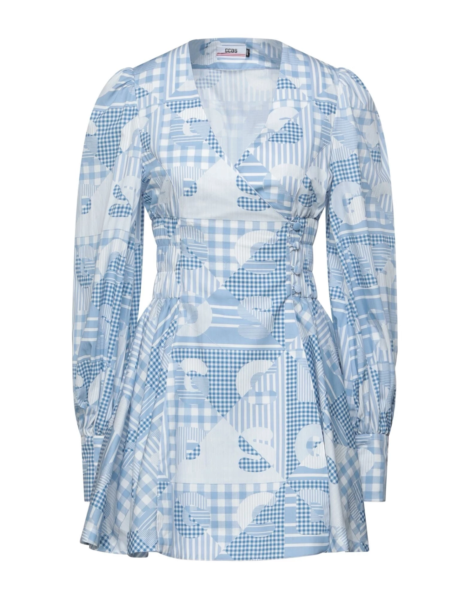 plain weave, no appliquΓ©s, multicolor pattern, v-neck, long sleeves, no pockets, button closing, unlined