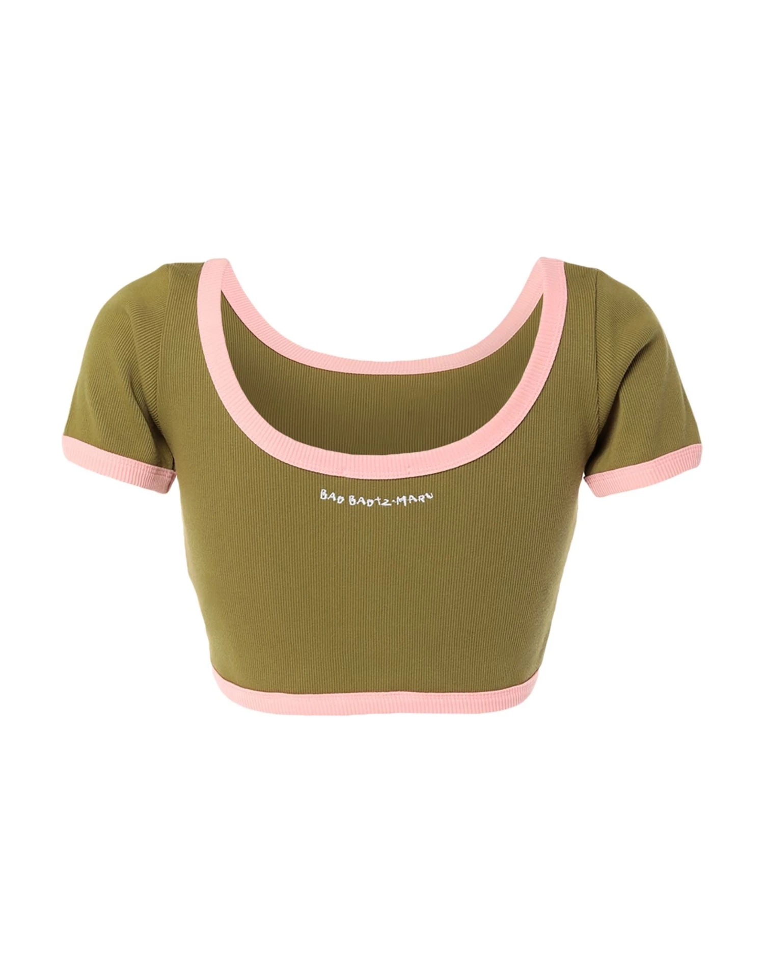 knitted, embroidered detailing, logo, lightweight knit, solid color with print, wide neckline, short sleeves, no pockets, stretch