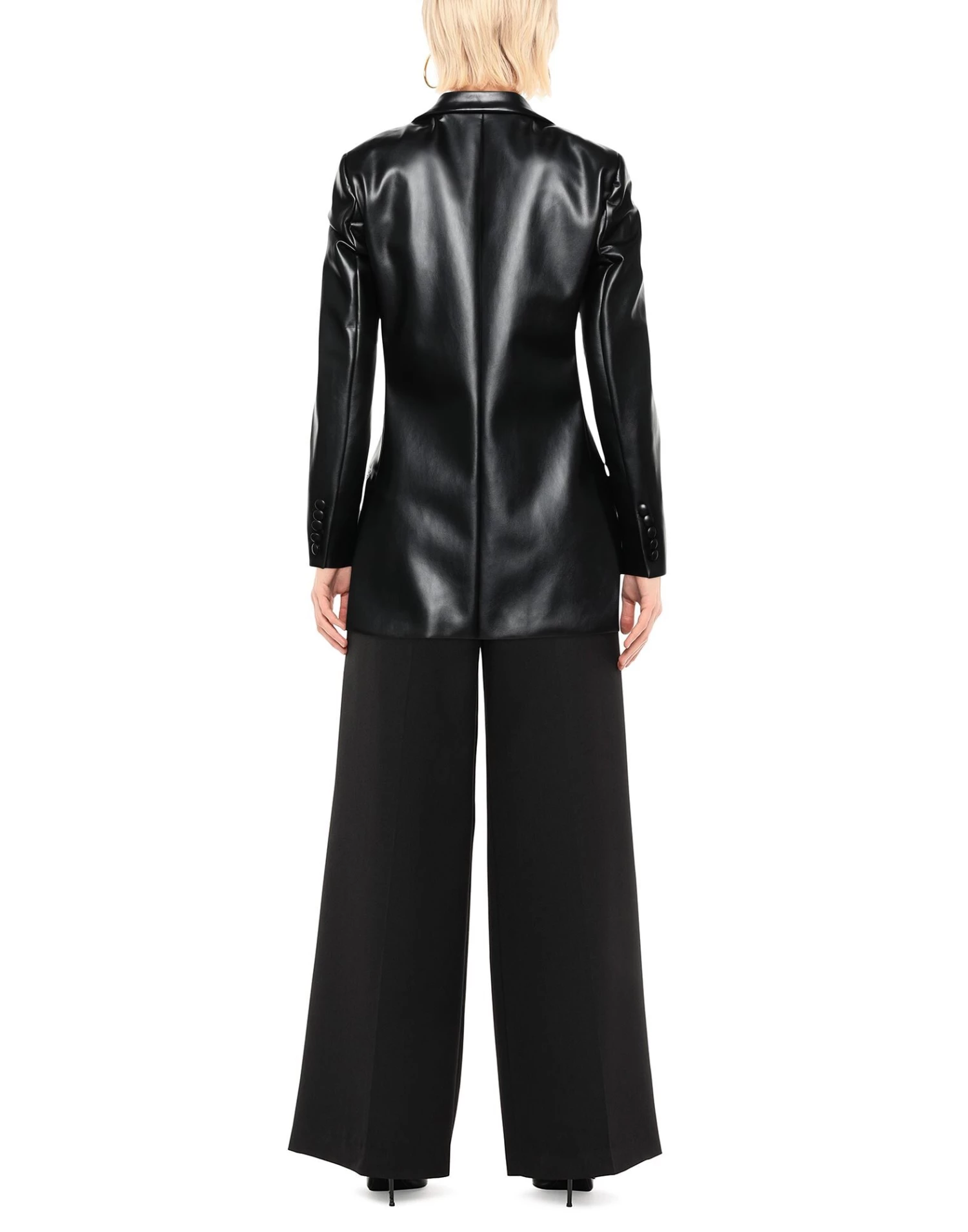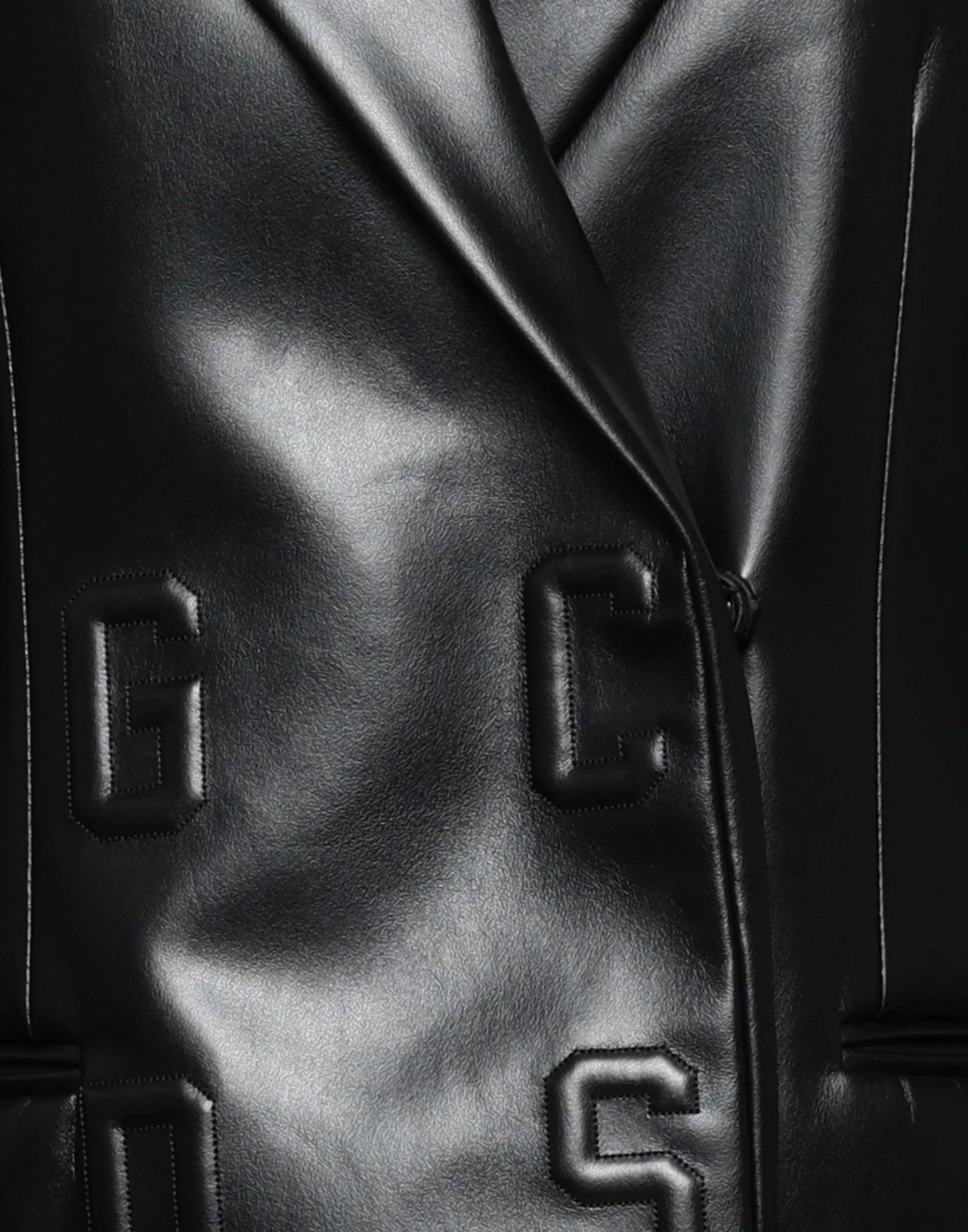 coated fabric, brand logo, solid color, lapel collar, single-breasted , long sleeves, fully lined, snap buttons fastening, multipockets, pleated pocket, dual back vents