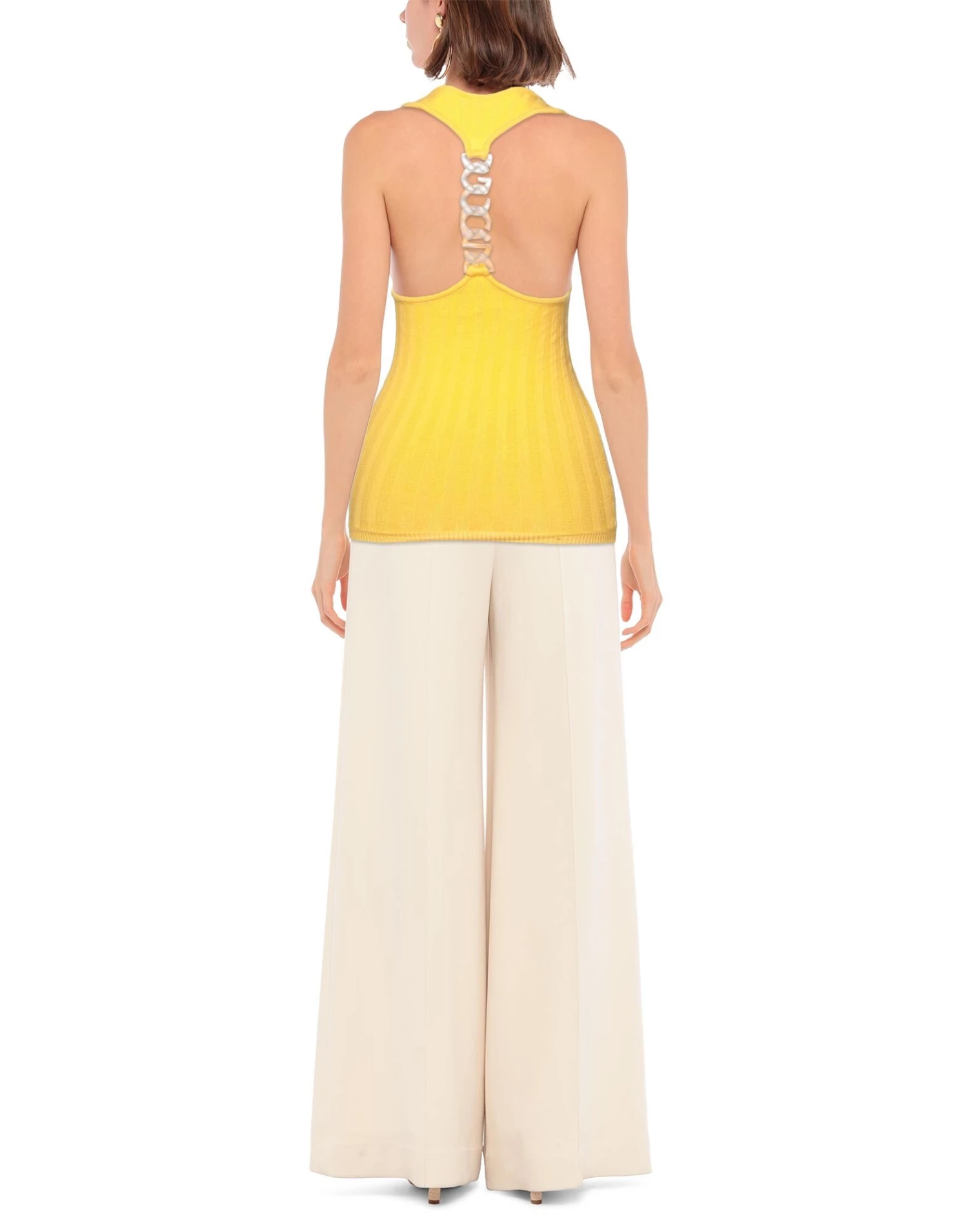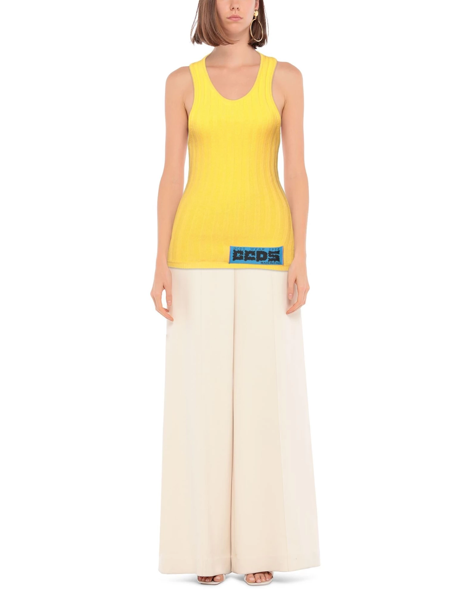 knitted, lightweight knit, brand logo, solid color, round collar, sleeveless, no pockets