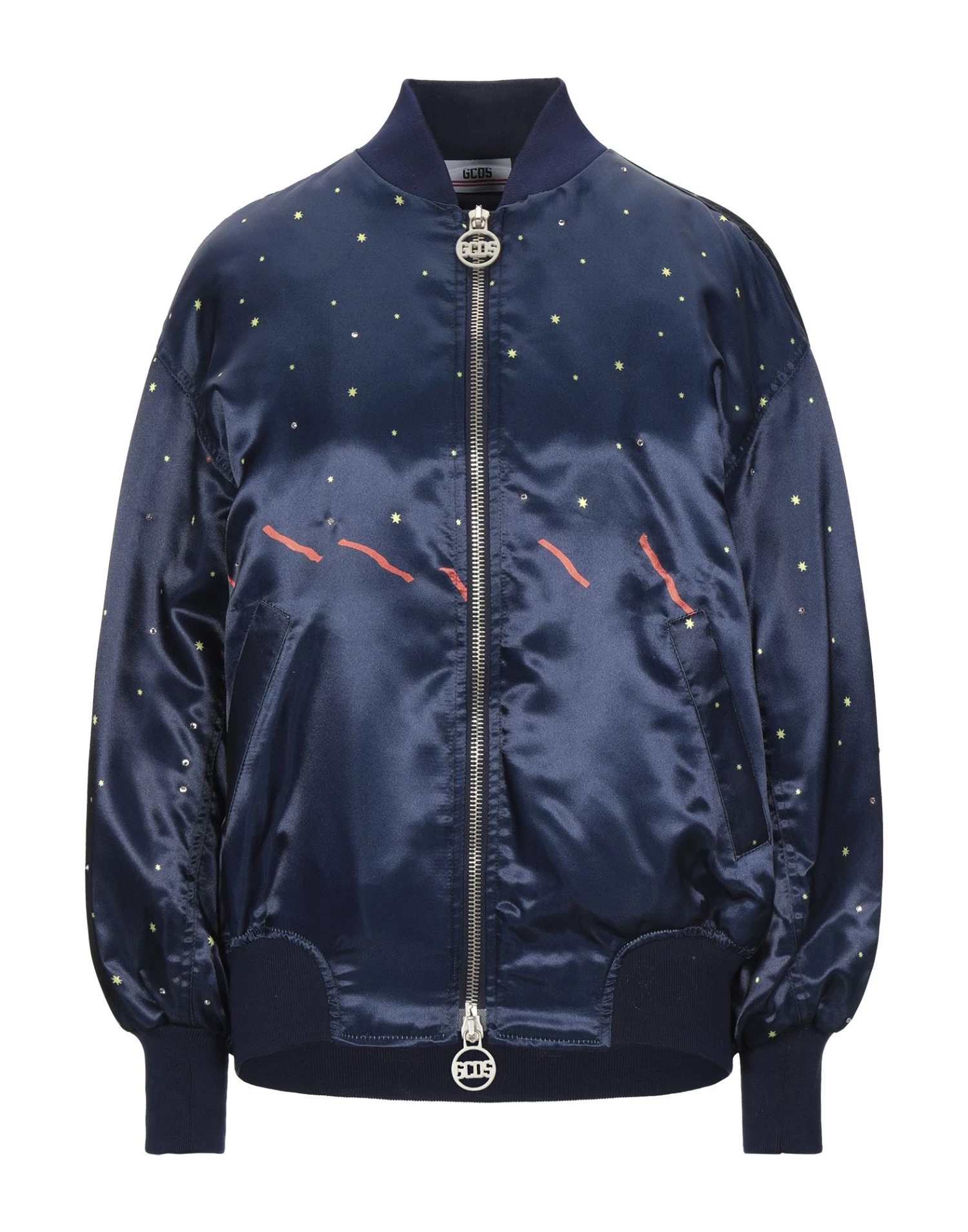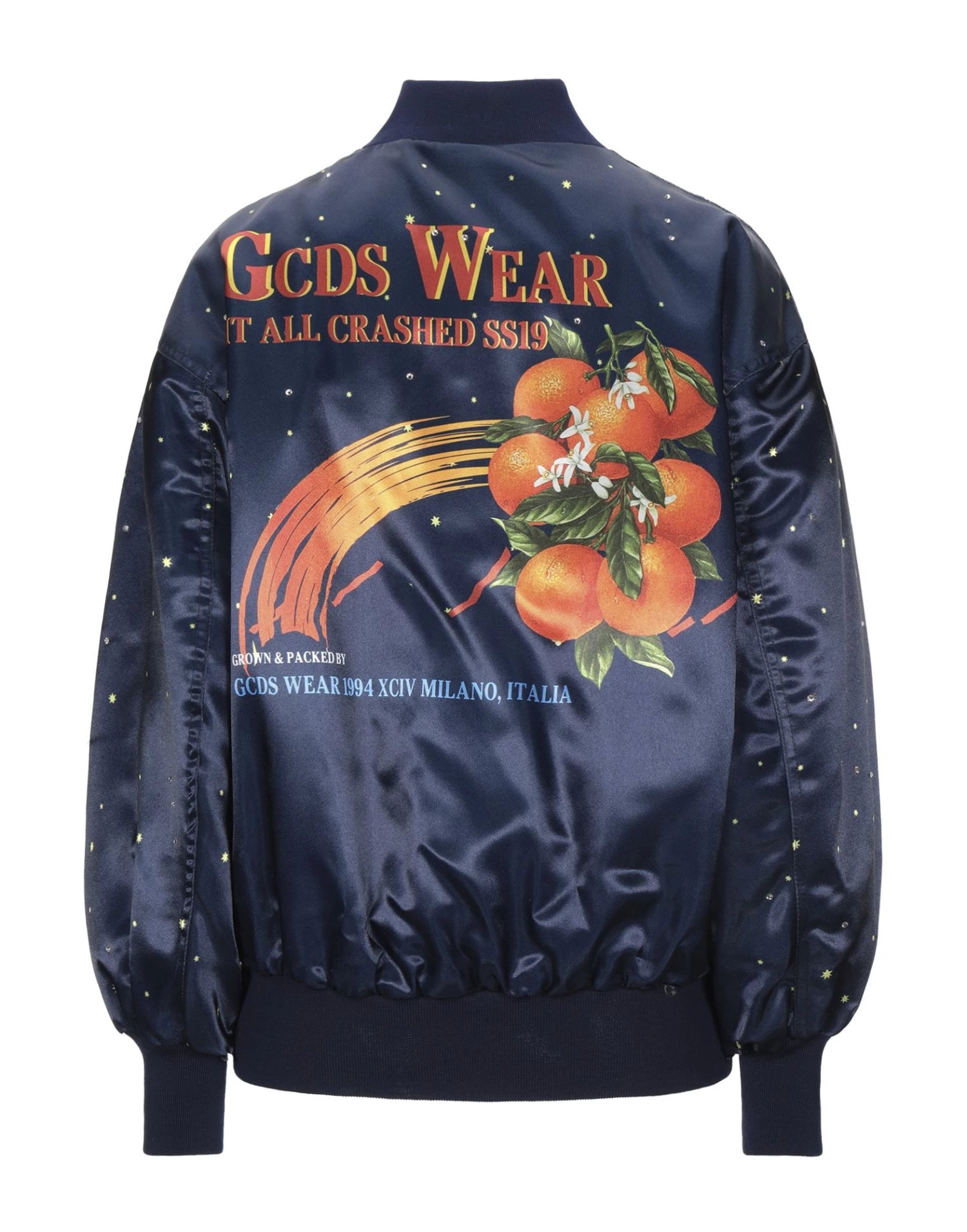 satin, logo, rhinestones, multicolor pattern, single-breasted , zip, round collar, multipockets, long sleeves, internal padding