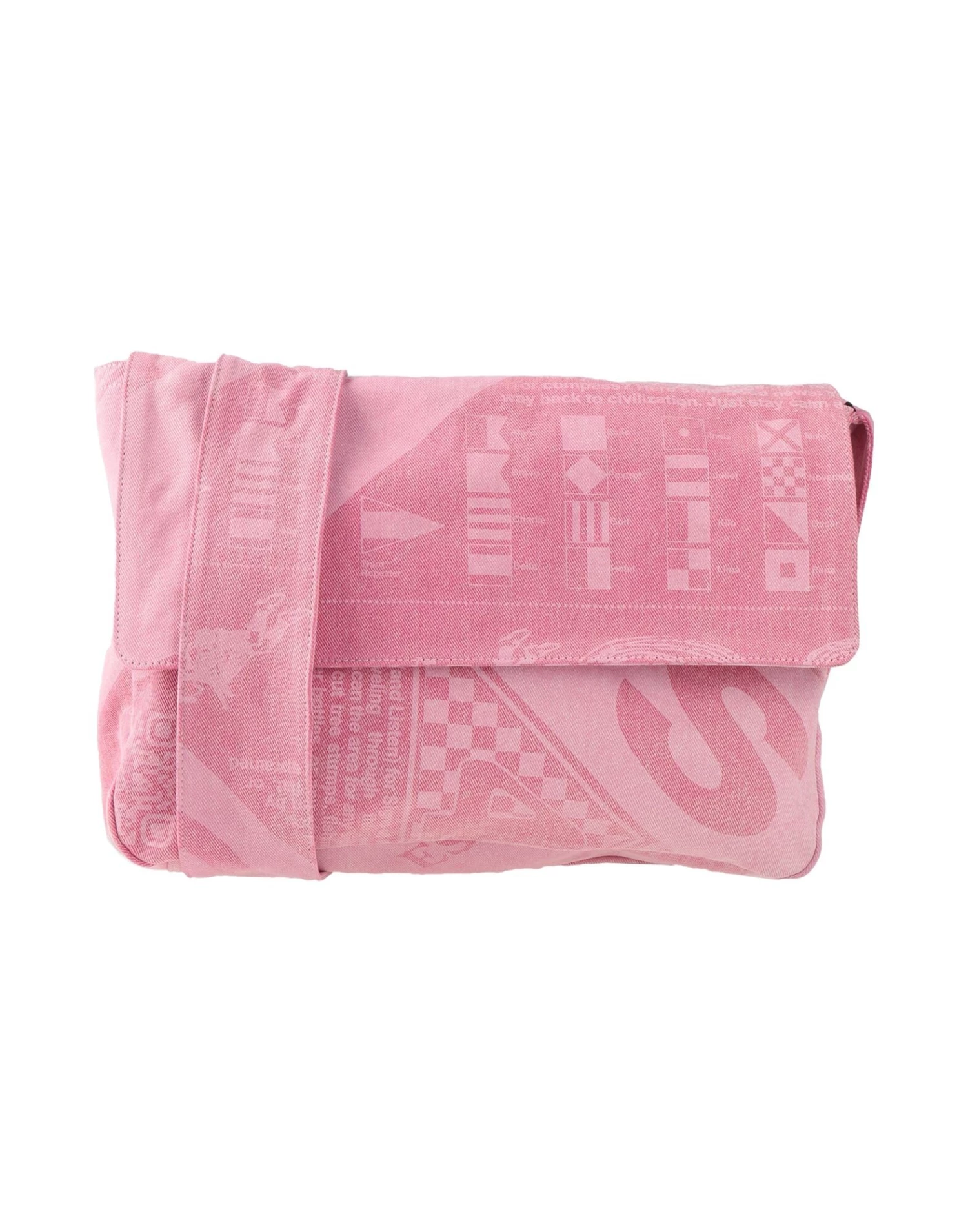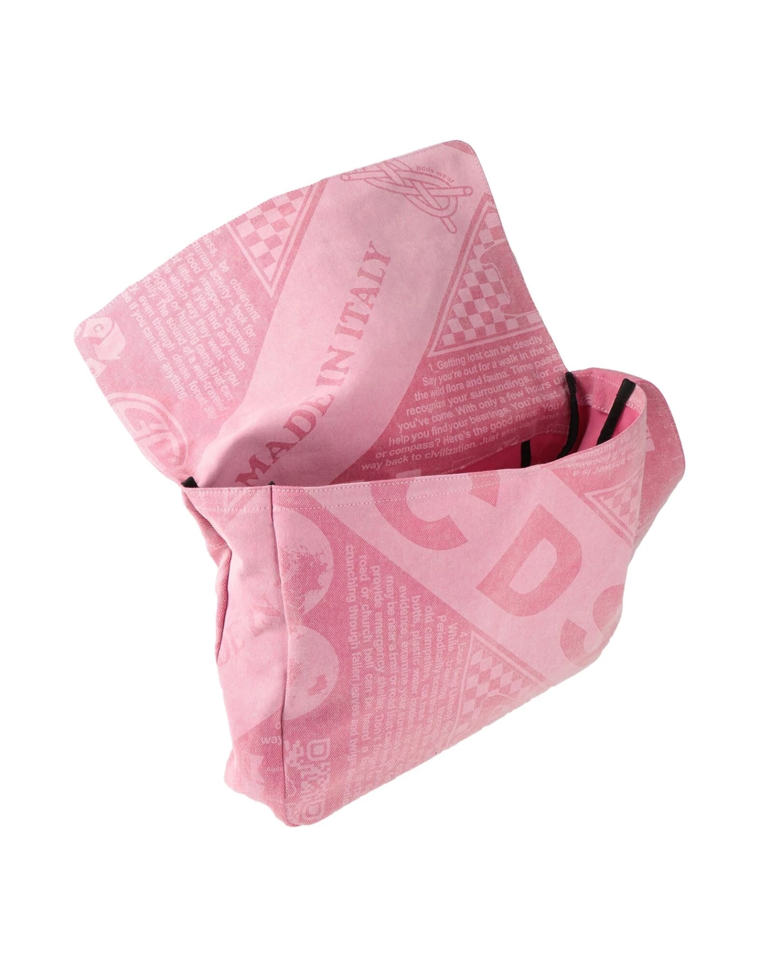 large, denim, brand logo, two-tone, unlined, clasp fastening, internal pockets, address tag, daytime
