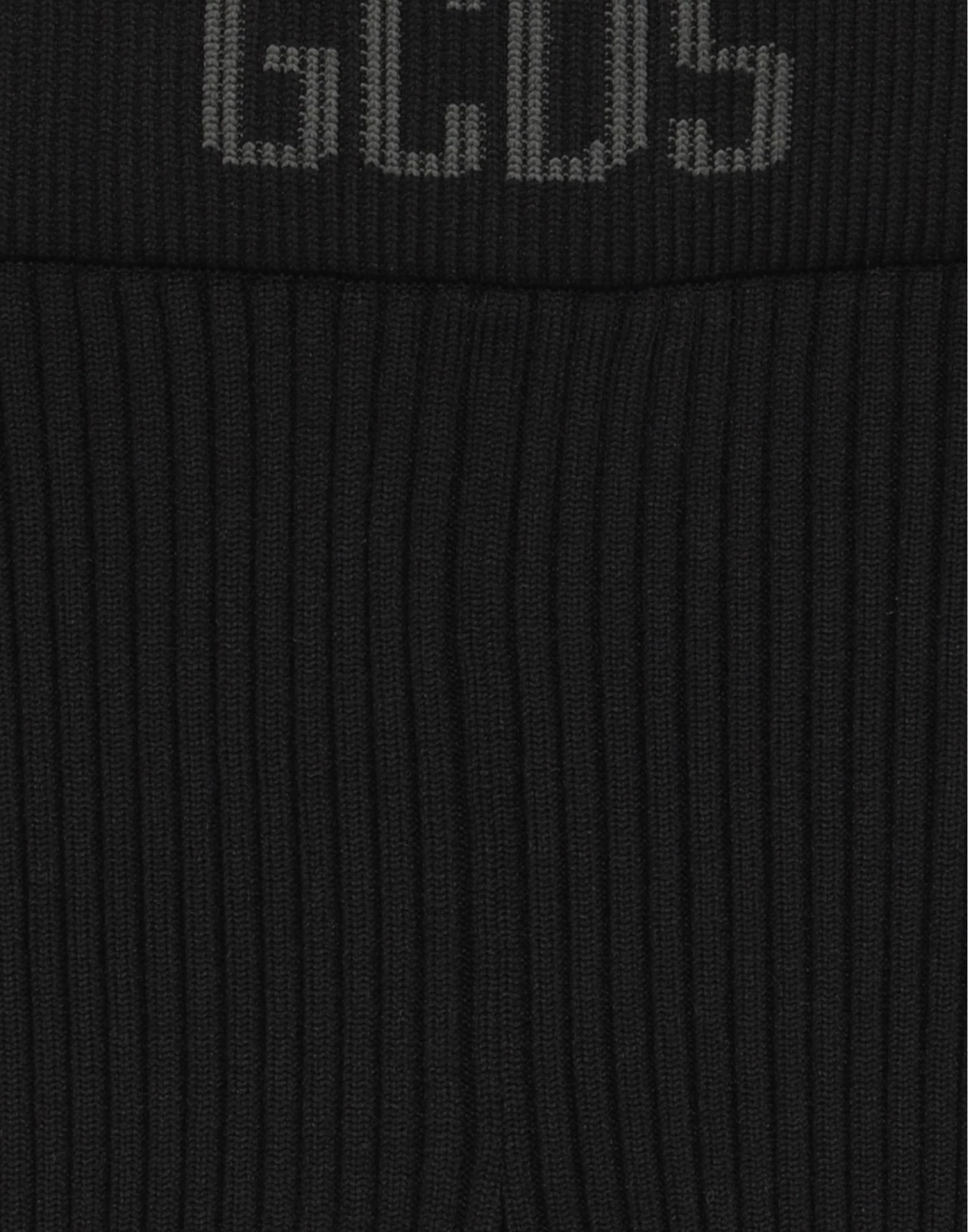 knitted, ribbed, brand logo, mid rise, solid color, elasticized waist, slim-leg pants, straight leg, no pockets, stretch