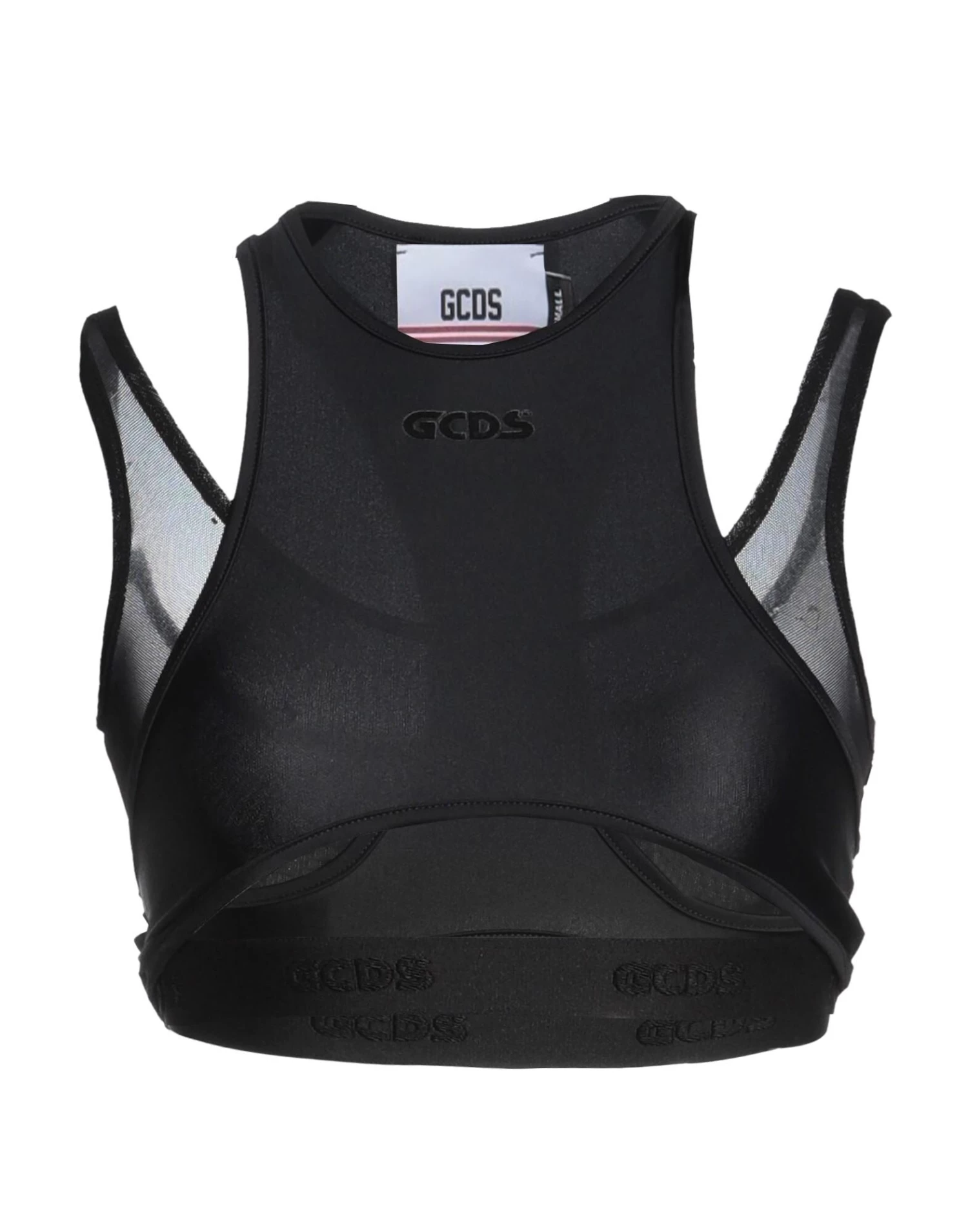 synthetic jersey, brand logo, solid color, round collar, sleeveless, fully lined, stretch