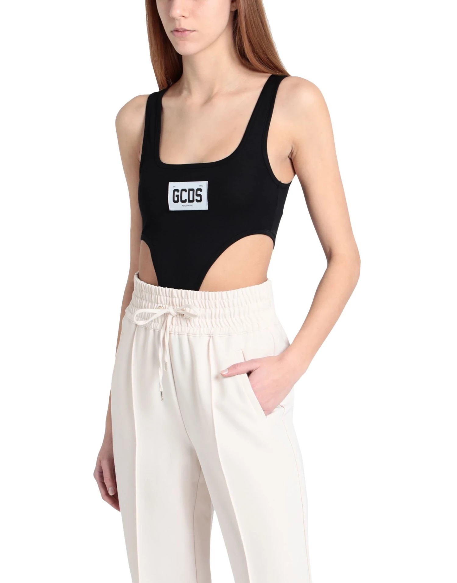 jersey, brand logo, solid color, square neckline, sleeveless, snap buttons fastening, crotch of body