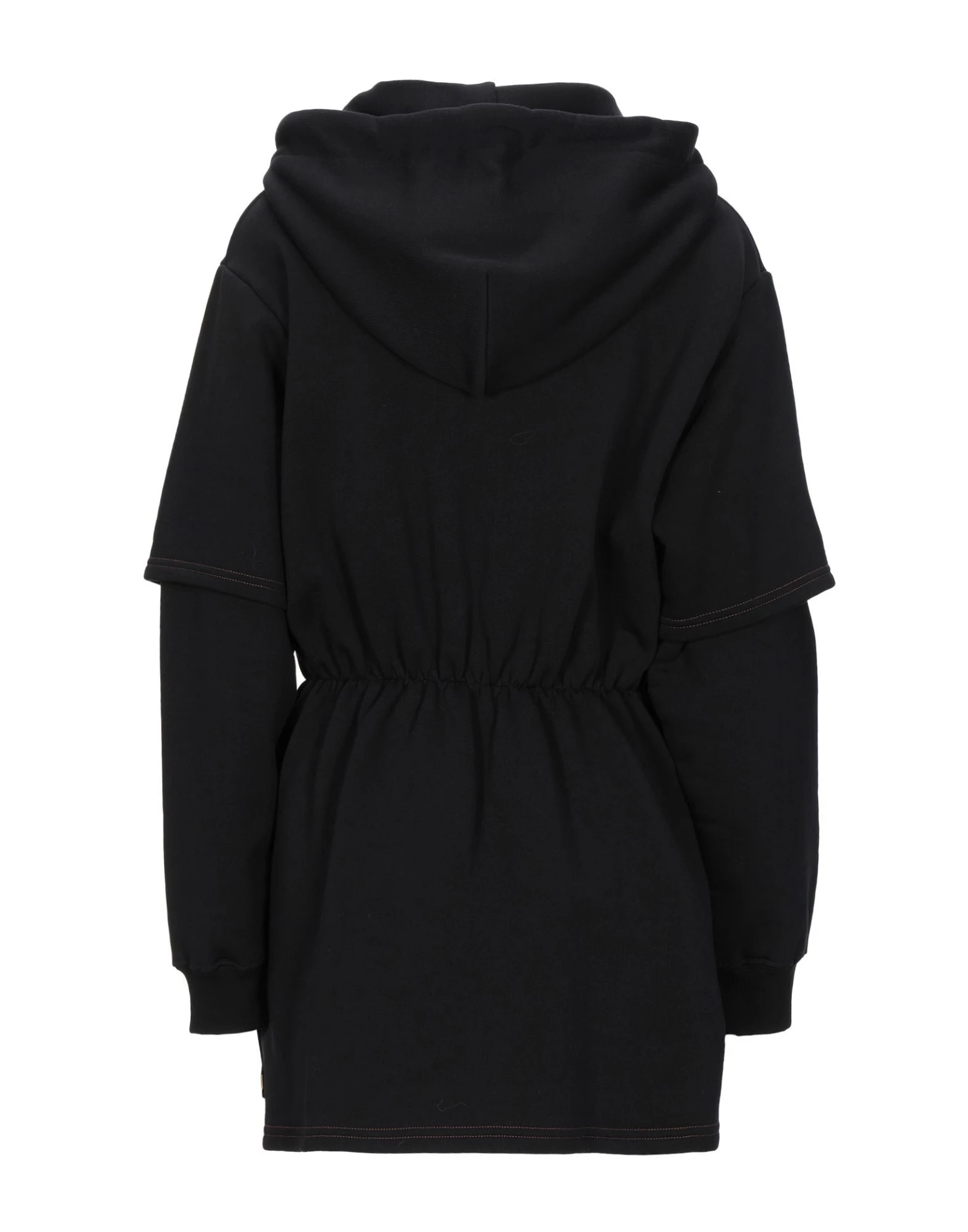 sweatshirt fleece, logo, solid color, hooded collar, long sleeves, no pockets, fleece lining