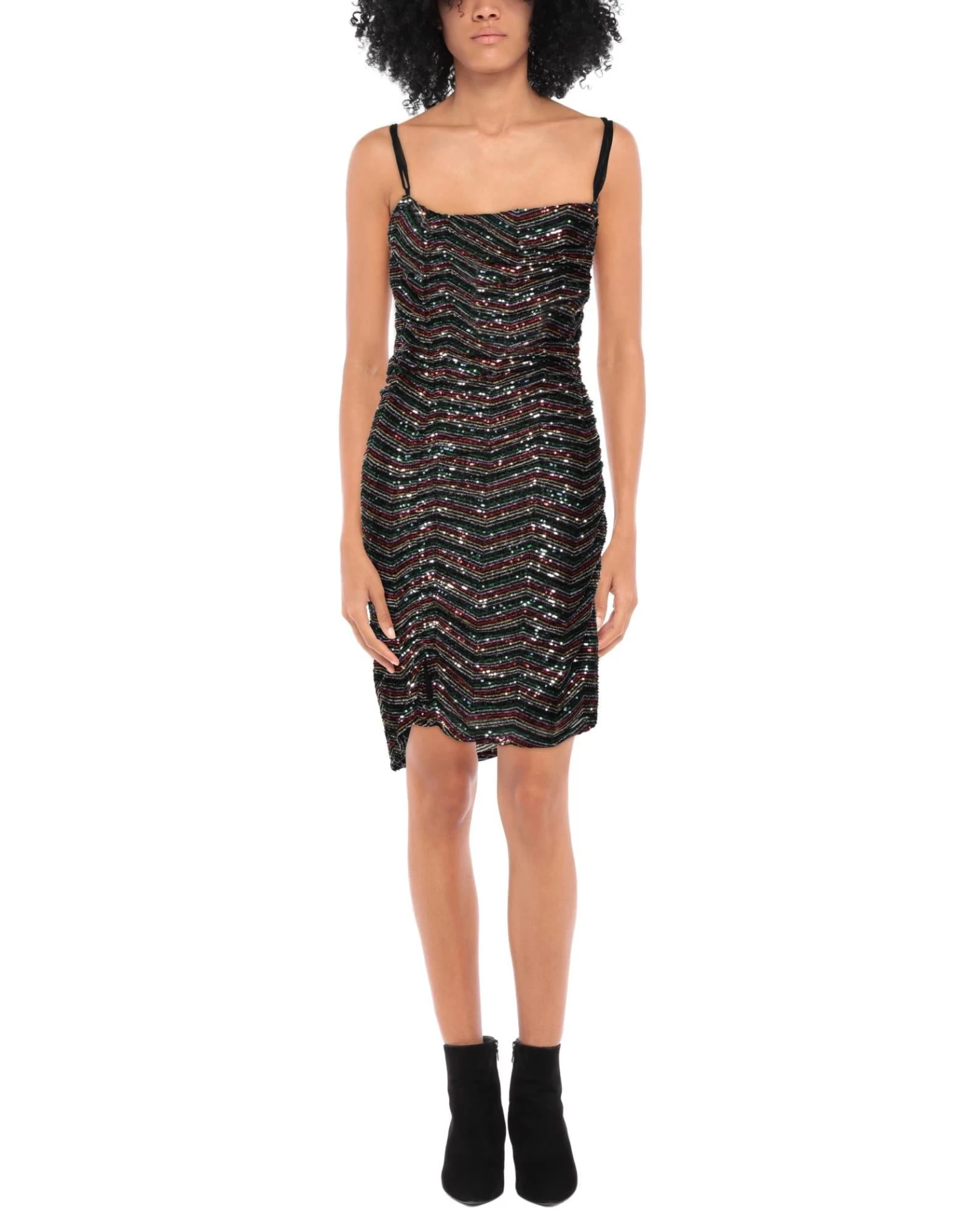 tulle, sequins, multicolor pattern, deep neckline, sleeveless, fully lined, no pockets, stretch