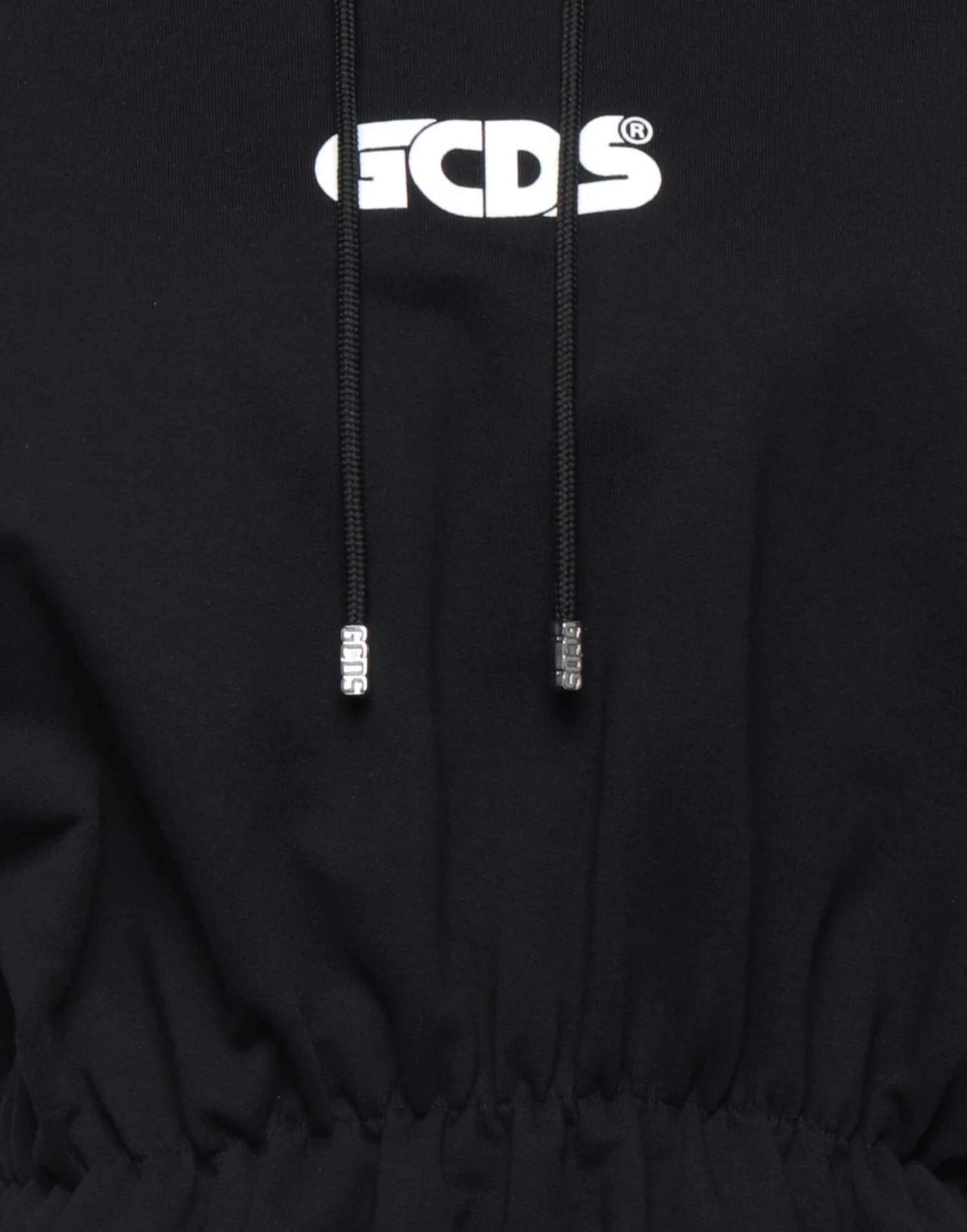 sweatshirt fleece, brand logo, two-tone, hooded collar, long sleeves, no pockets, french terry lining