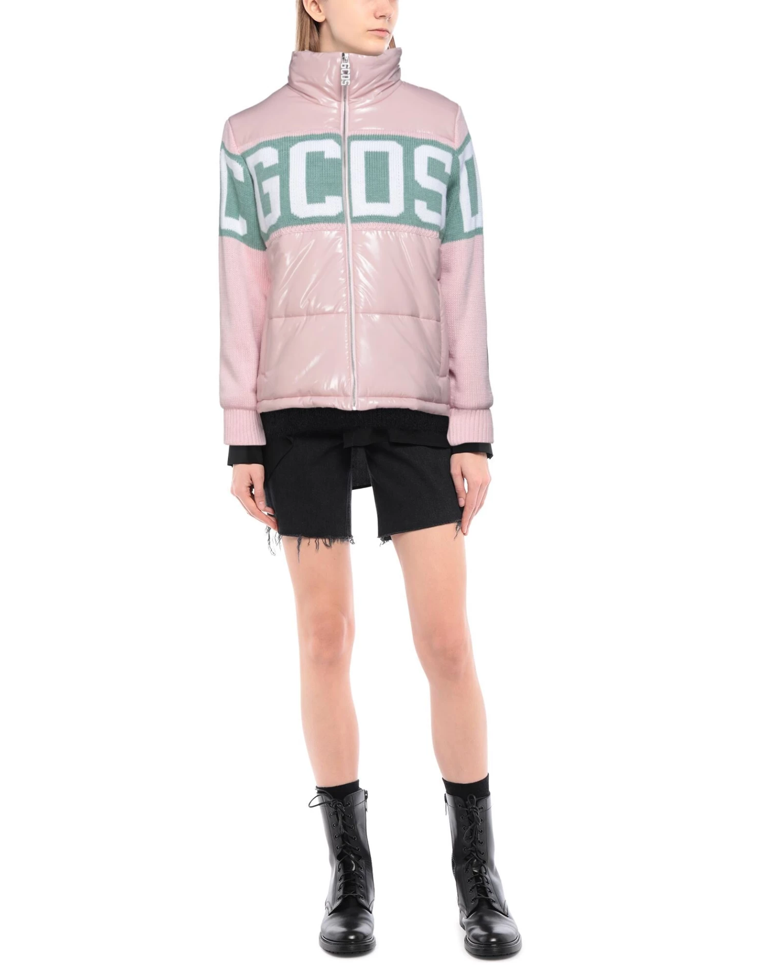 knitted, techno fabric, logo, solid color, single-breasted , zip, turtleneck, multipockets, one inside pocket, long sleeves, internal padding