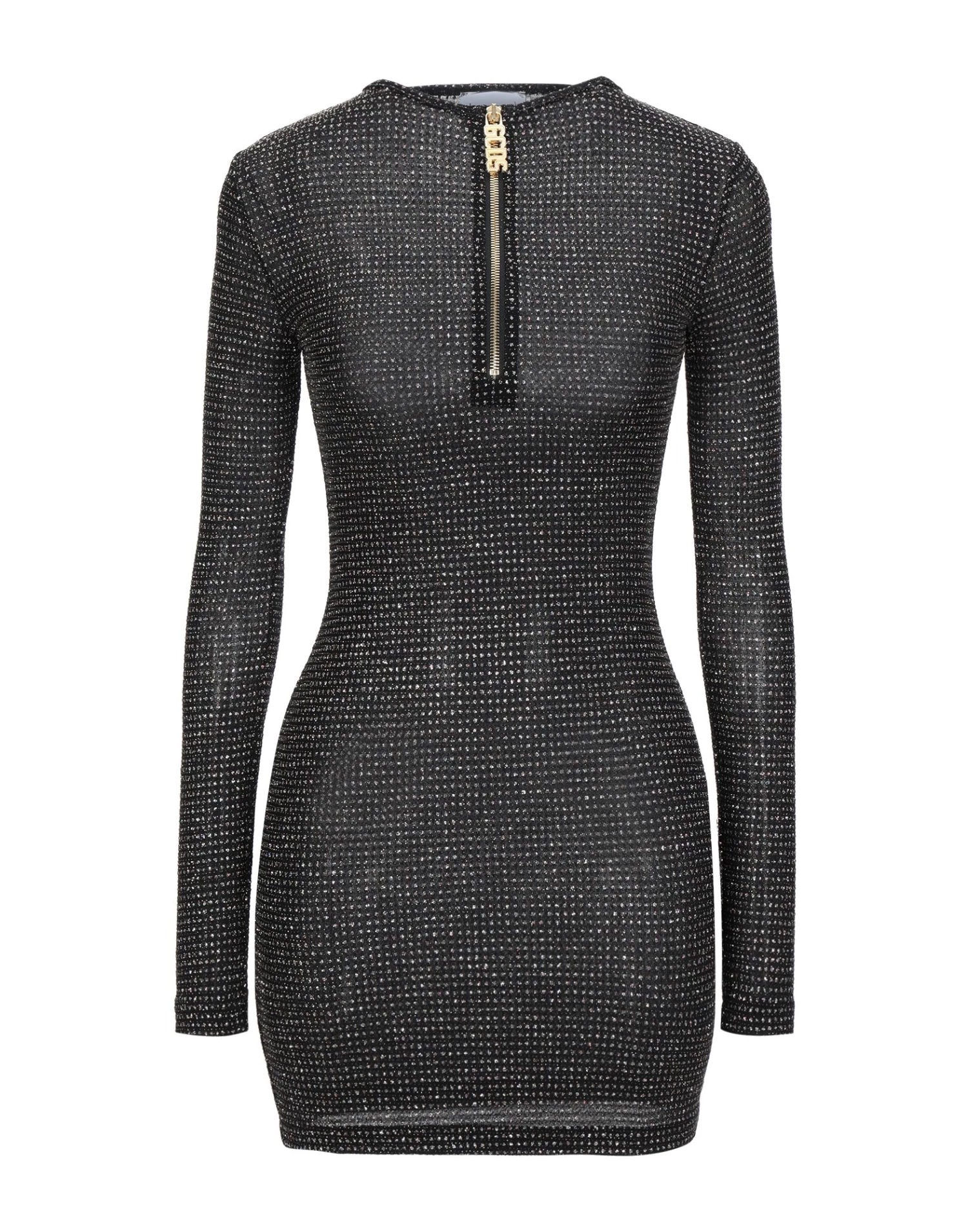 jersey, logo, glitter, multicolor pattern, round collar, long sleeves, no pockets, front closure, zipper closure, unlined, stretch