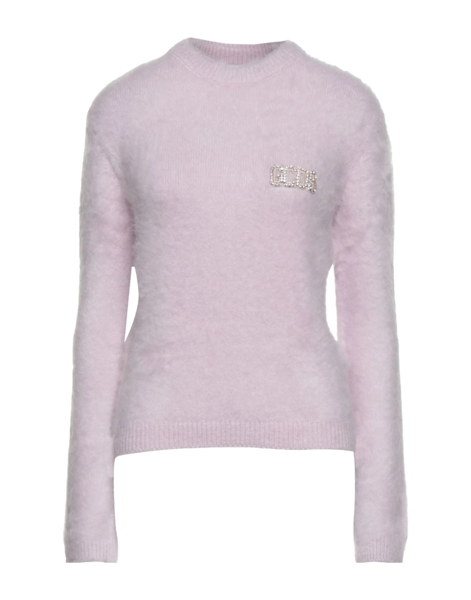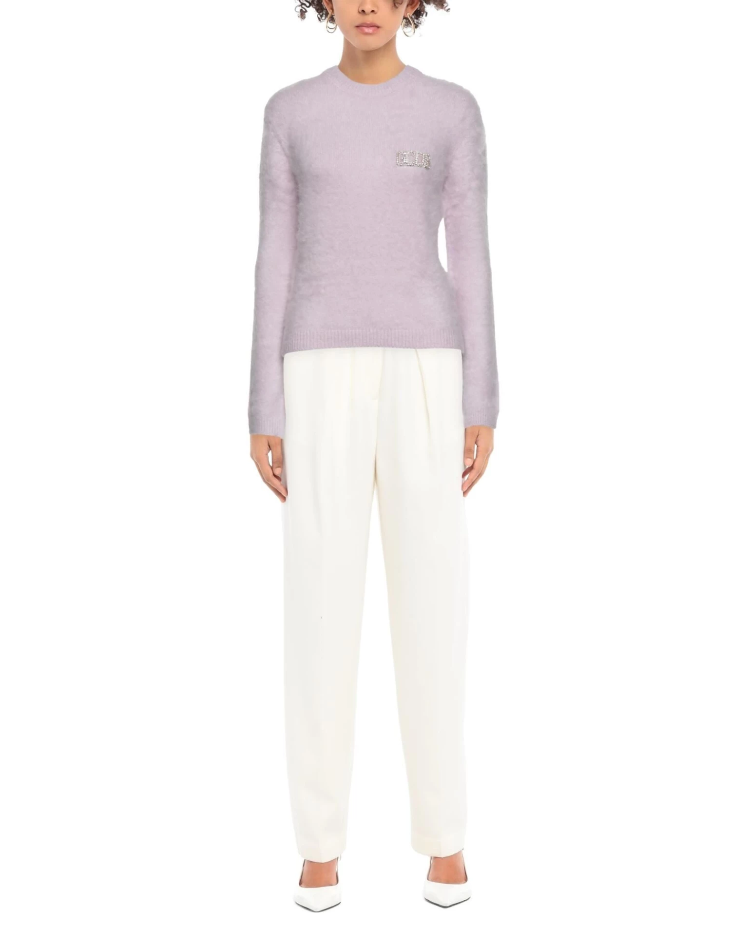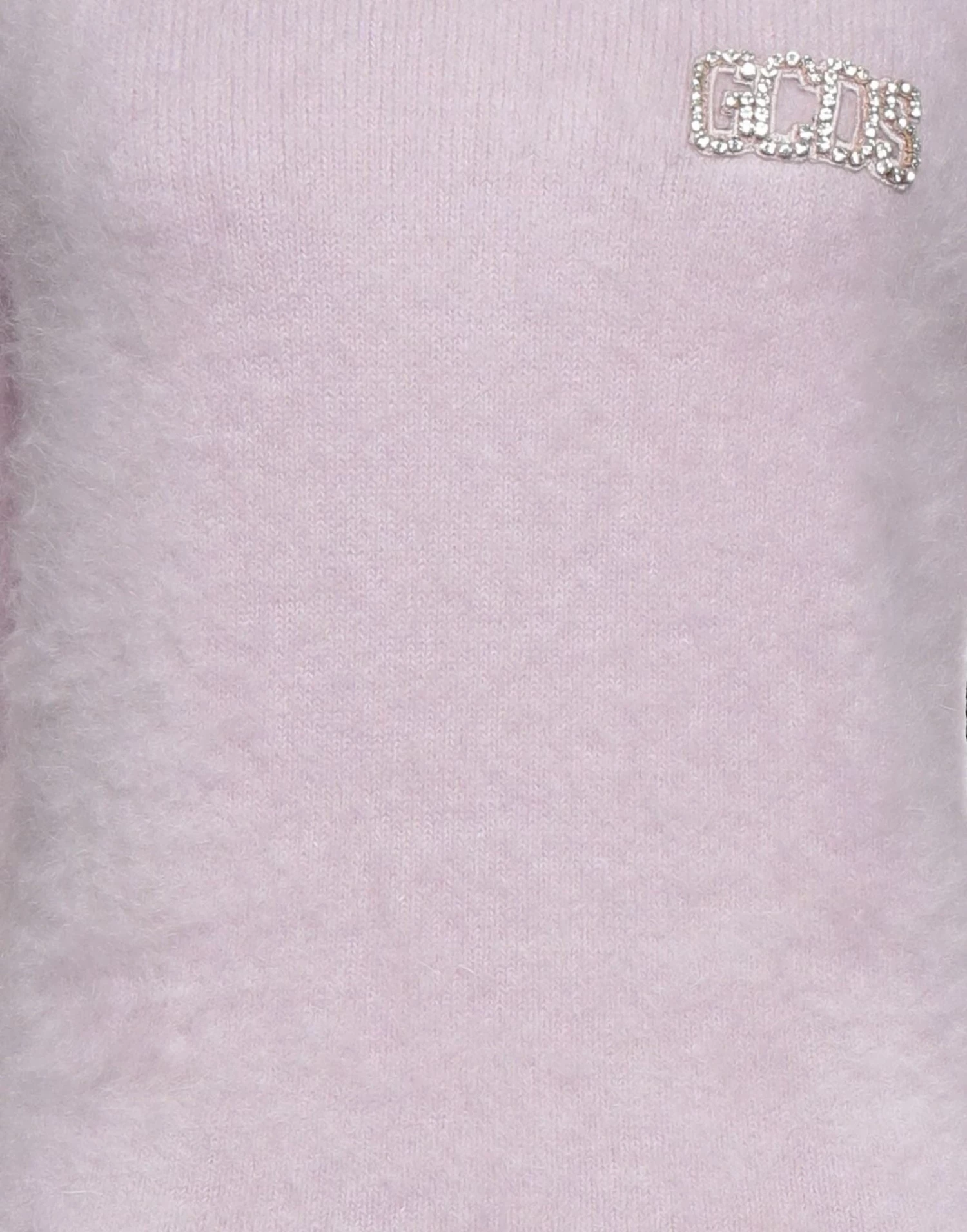 knitted, medium-weight knit, rhinestones, brand logo, solid colour with appliquΓ©s, round collar, long sleeves, no pockets