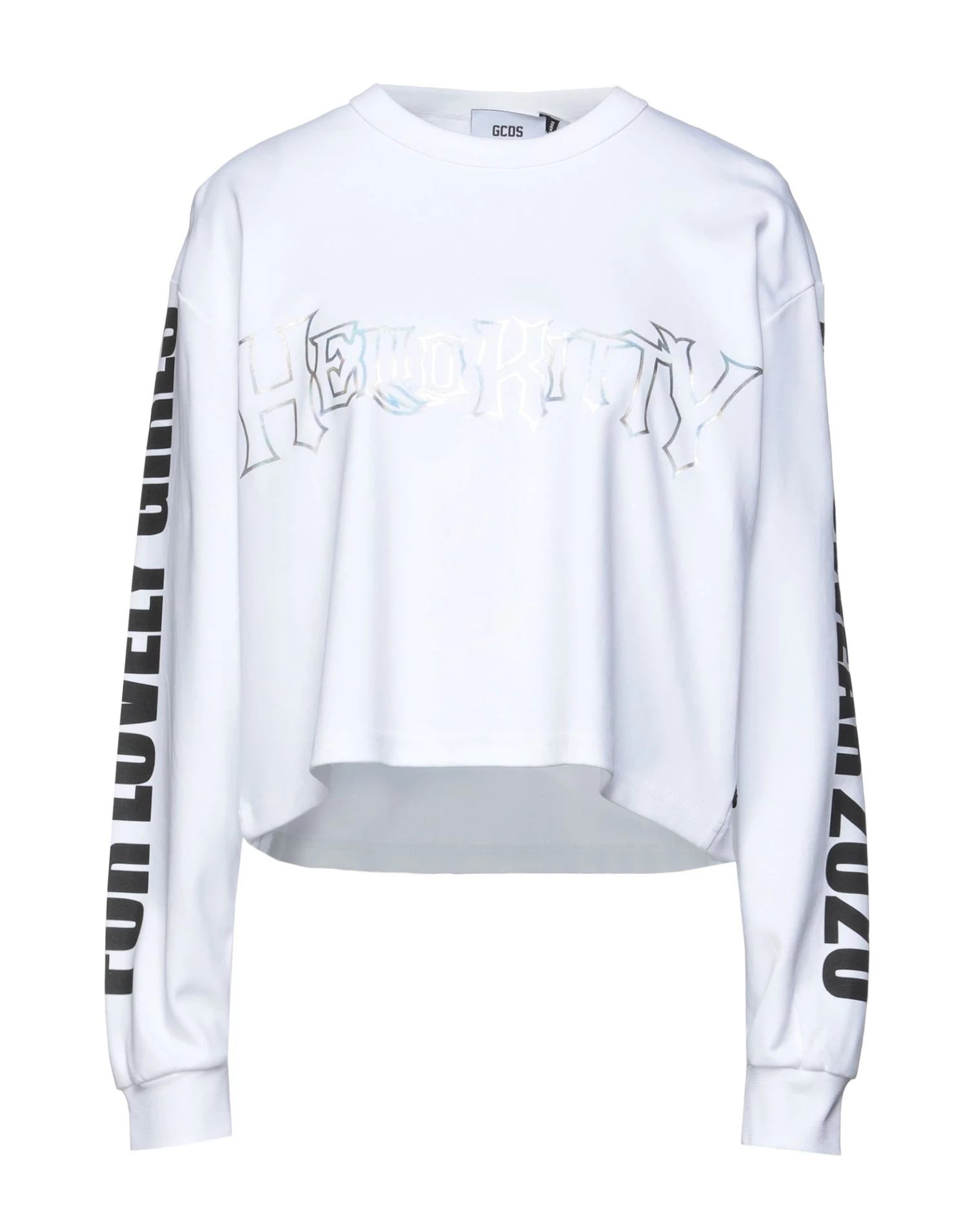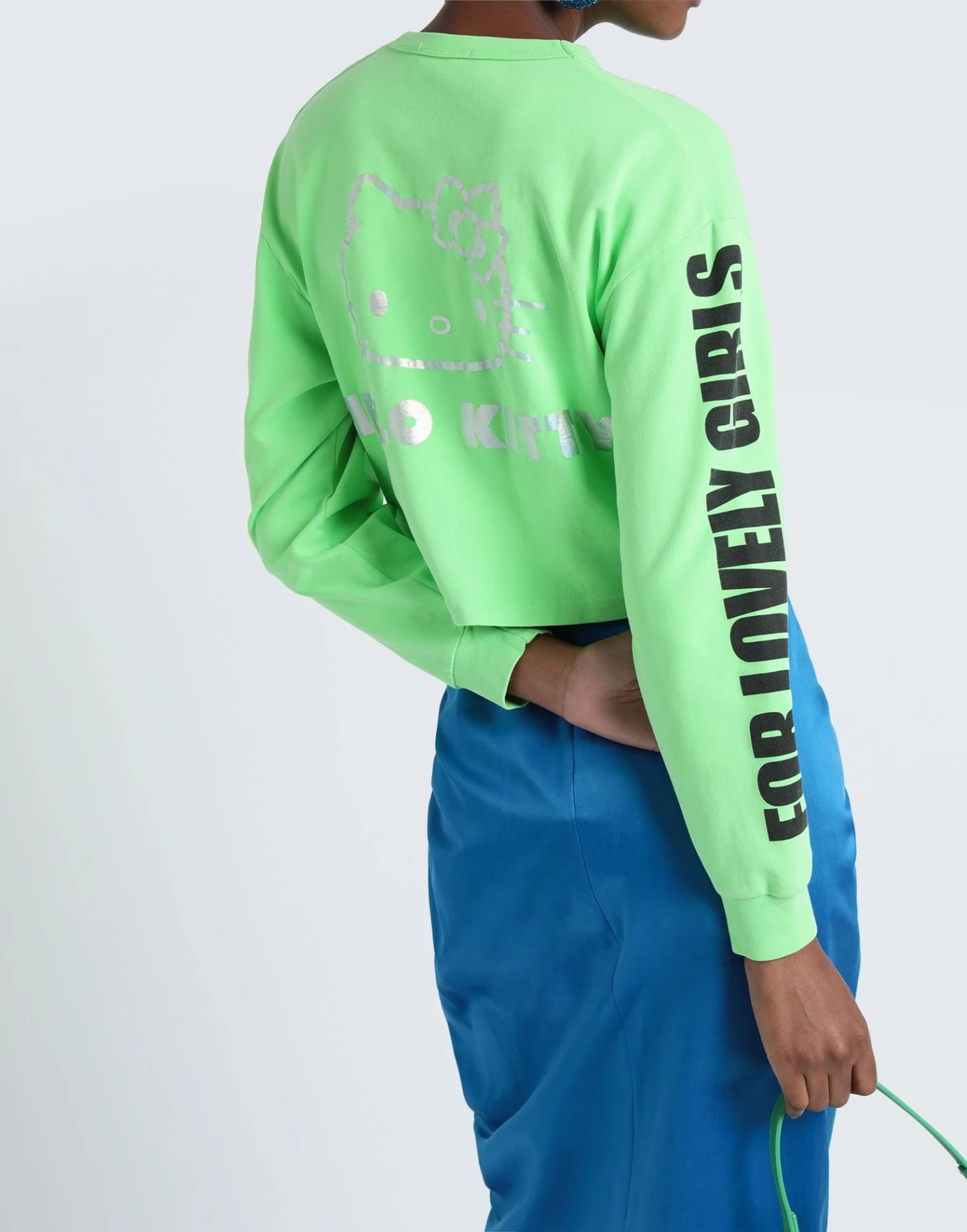 jersey, laminated effect, print, brand logo, multicolor pattern, round collar, long sleeves, no pockets