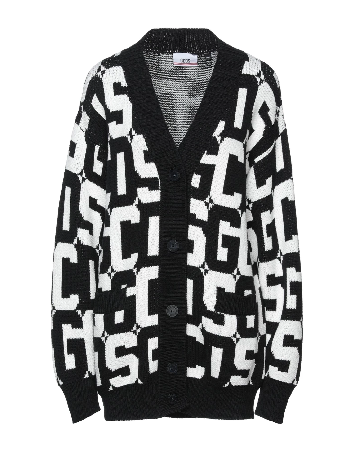knitted, lightweight knit, brand logo, logo design, v-neck, long sleeves, button closing, multipockets