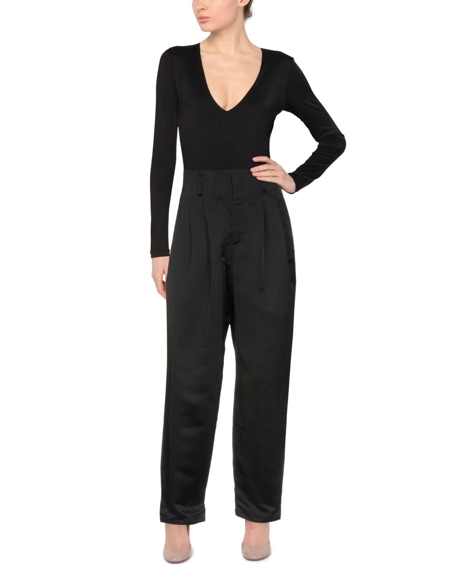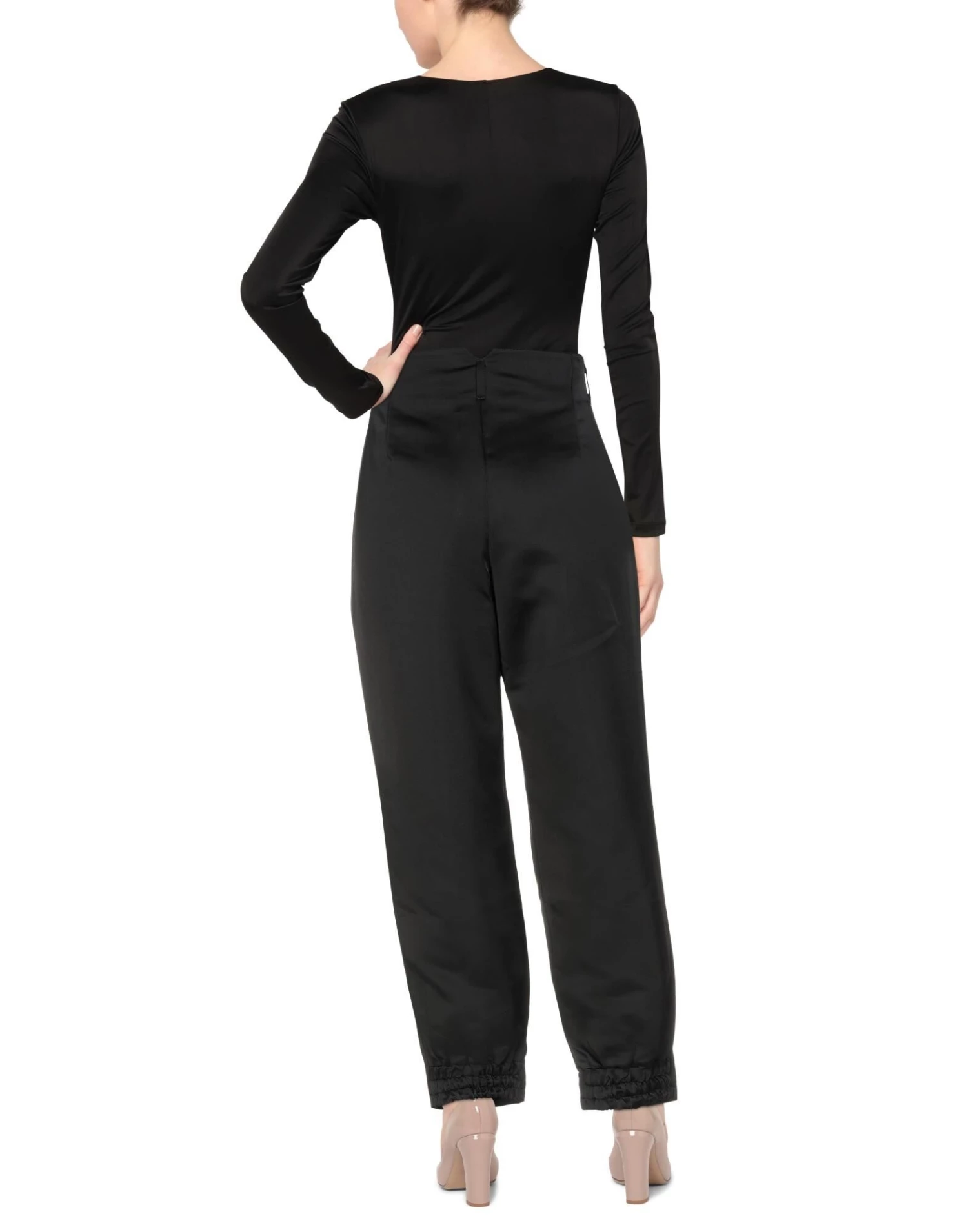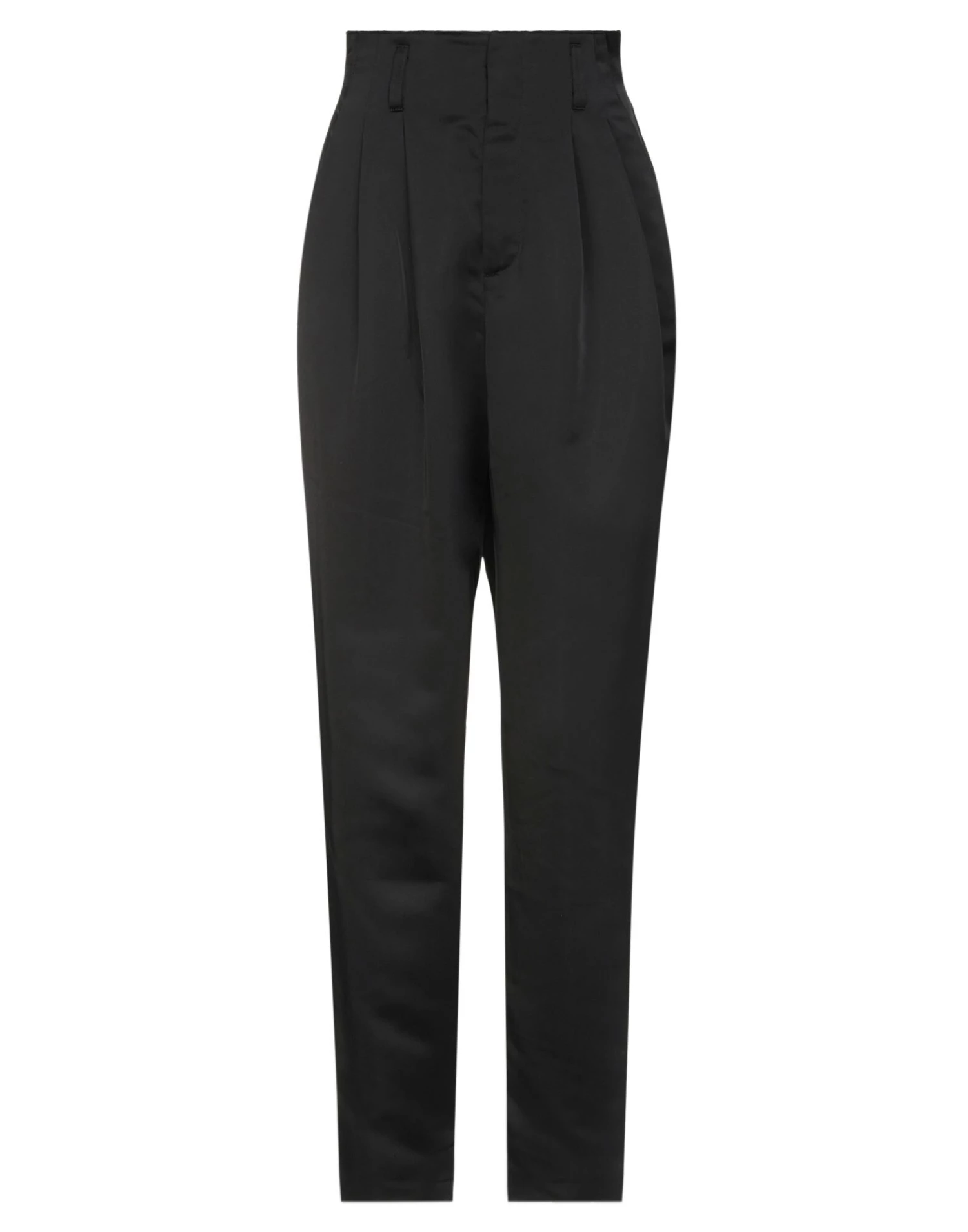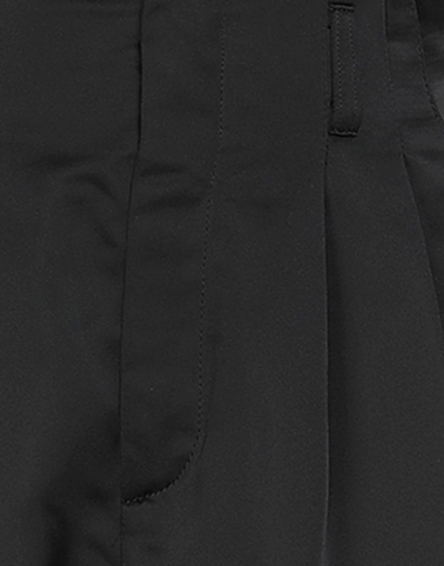 satin, basic solid color, logo, metal applications, high waisted, regular fit, tapered leg, hook-and-bar, zip, multipockets