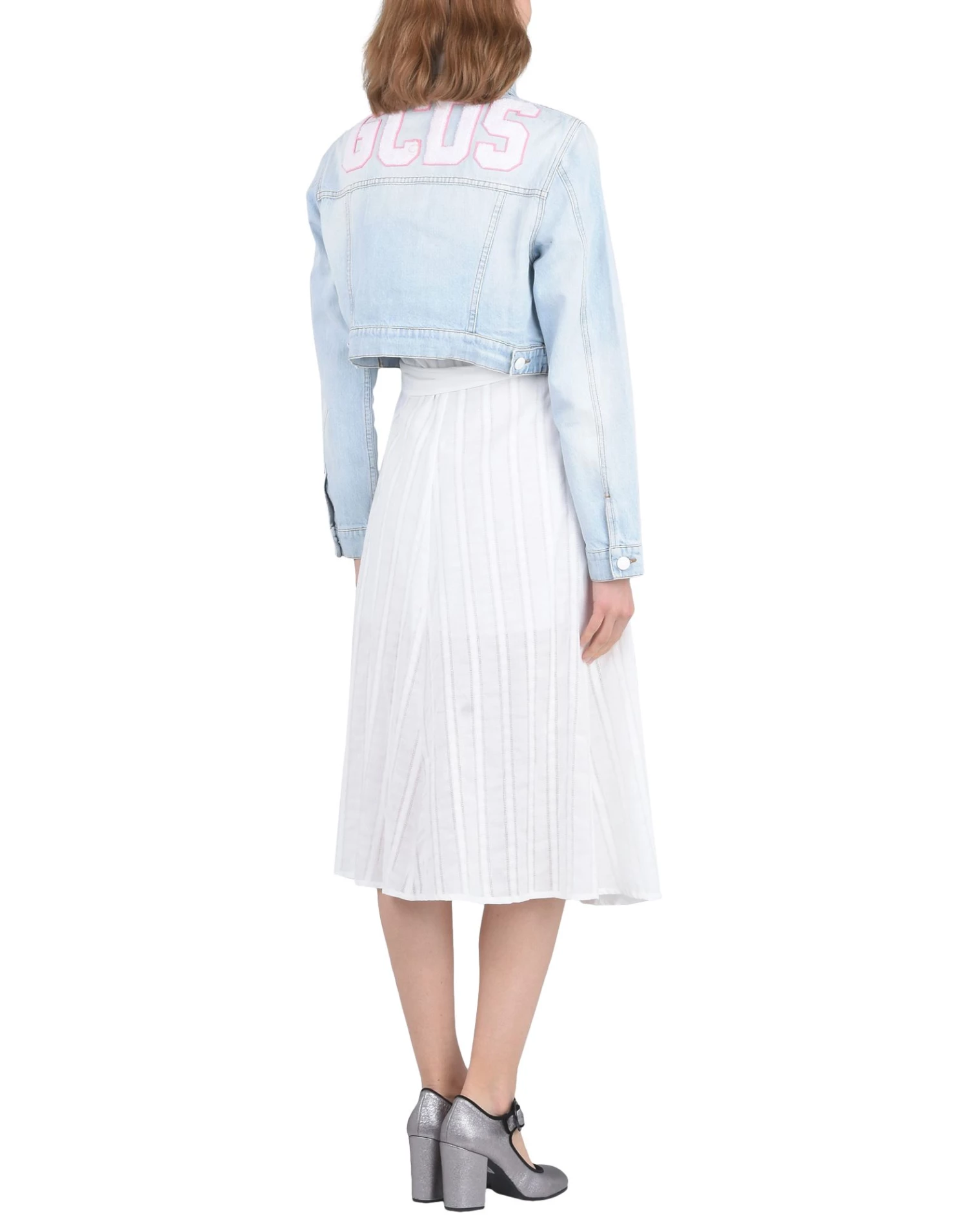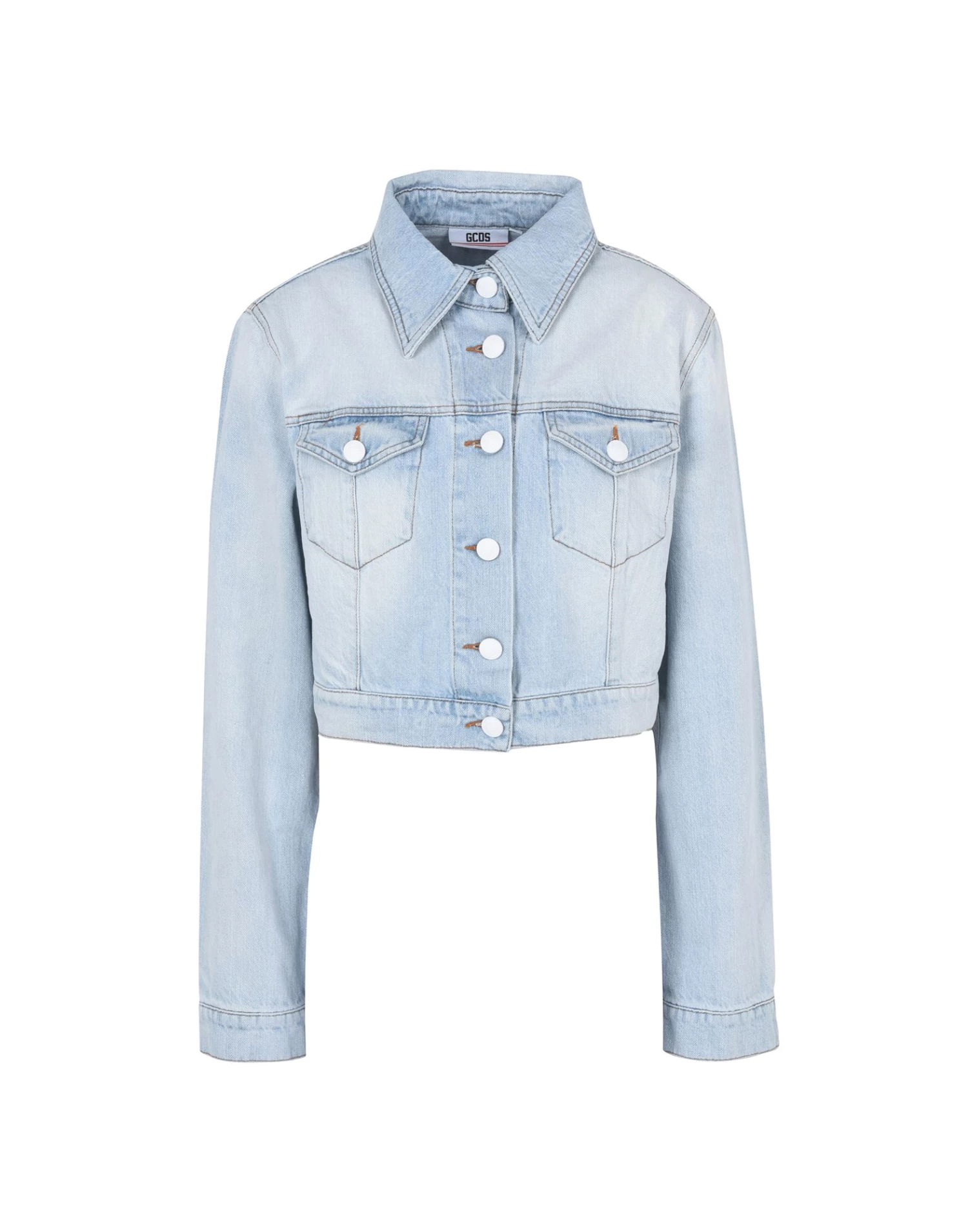 denim, solid color, faded, contrasting applications, logo, light wash, long sleeves, classic neckline, buttoned cuffs, single-breasted , front closure, button closing, multipockets, unlined, stretch