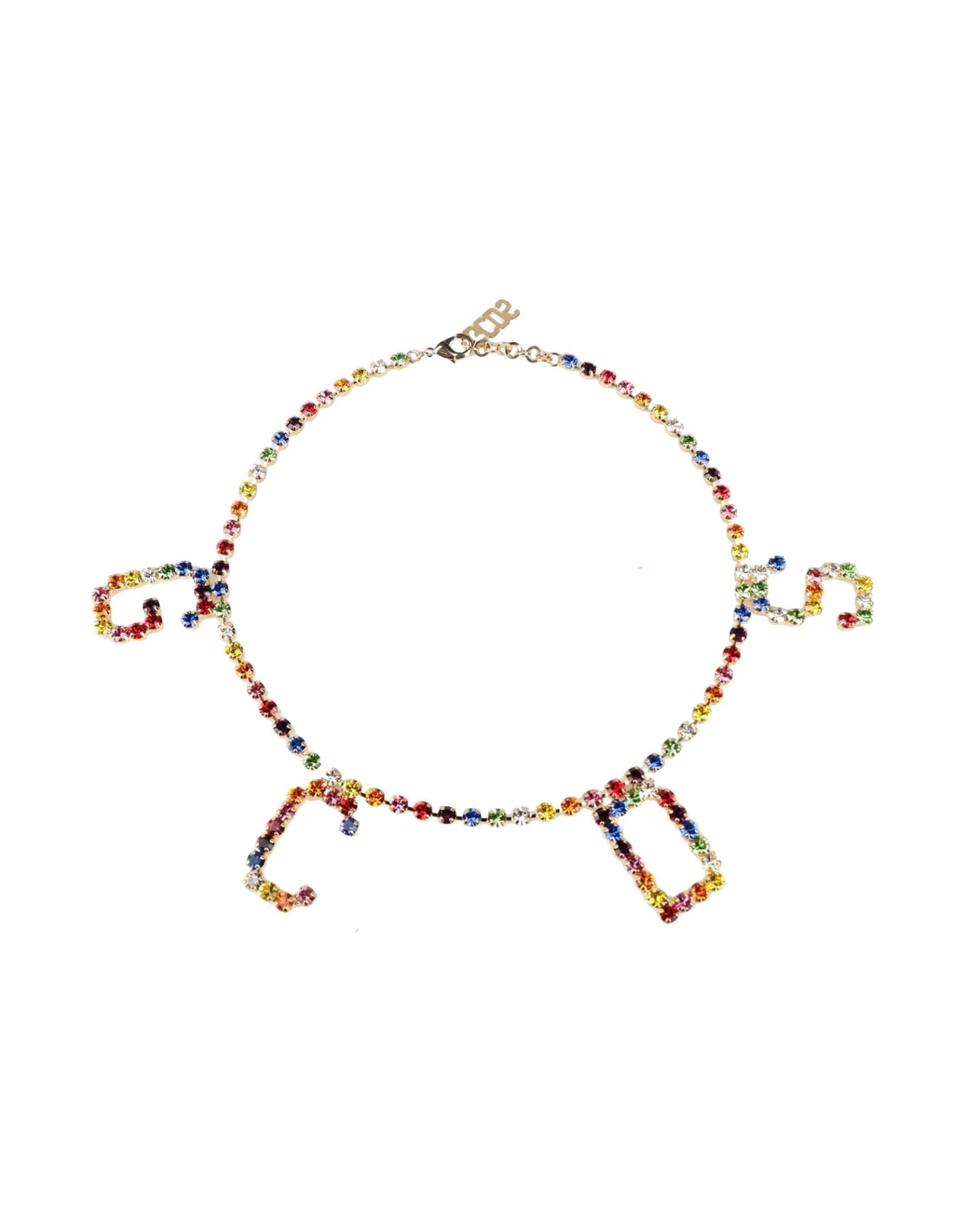 brand logo, rhinestones, clasp fastening