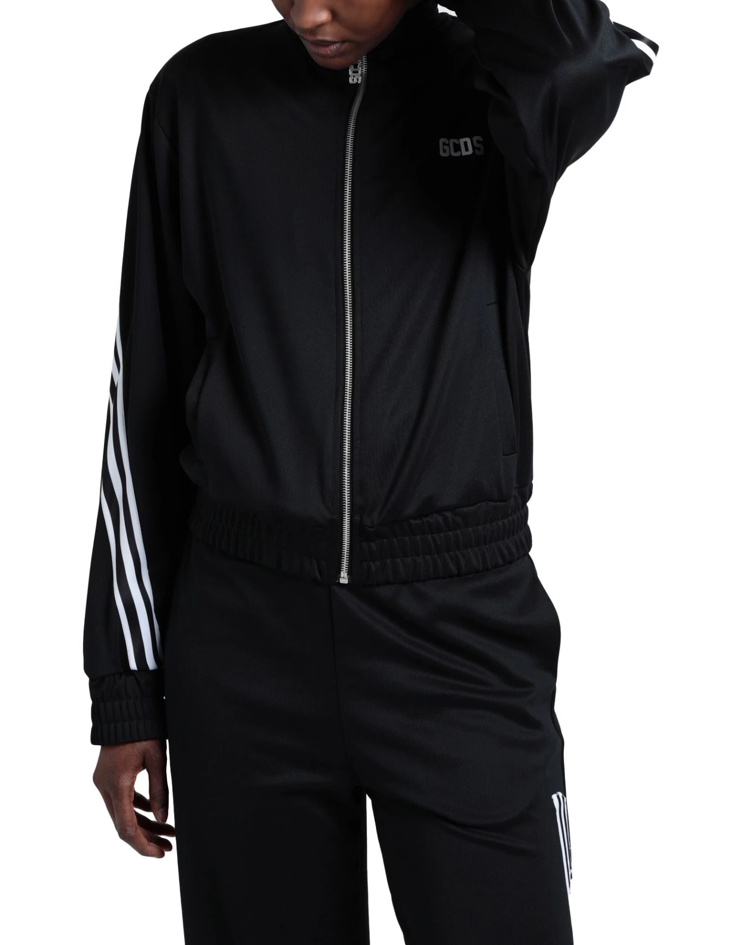 jersey, brand logo, side seam stripes, solid colour with appliquΓ©s, turtleneck, long sleeves, cuffs with elastic, zipper closure, multipockets, stretch