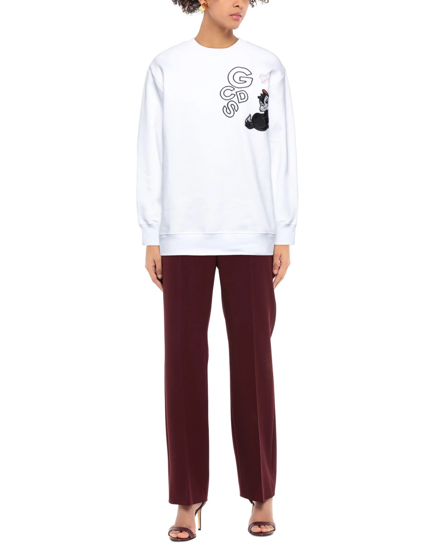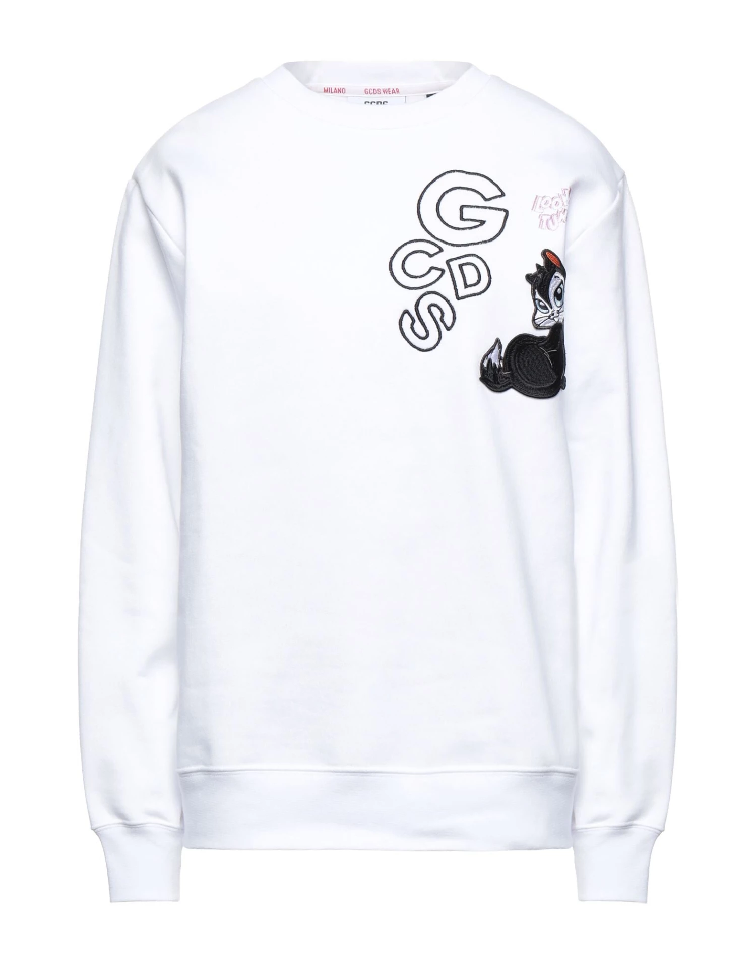 sweatshirt fleece, contrasting applications, embroidered detailing, solid colour with appliquΓ©s, round collar, long sleeves, fleece lining, no pockets