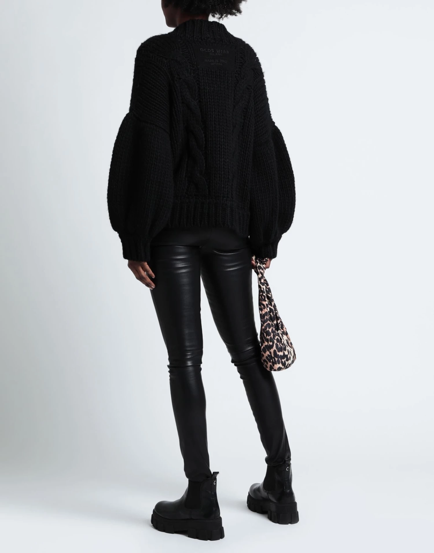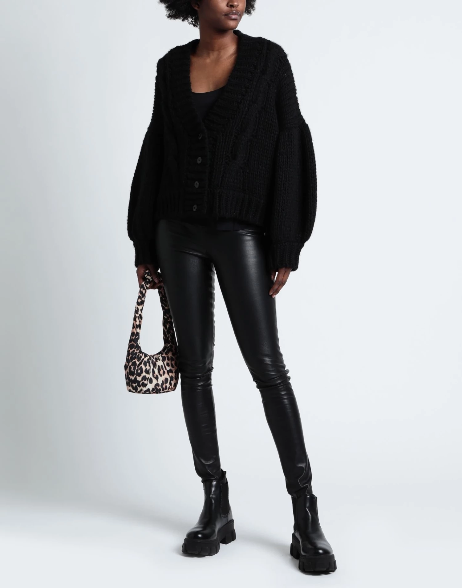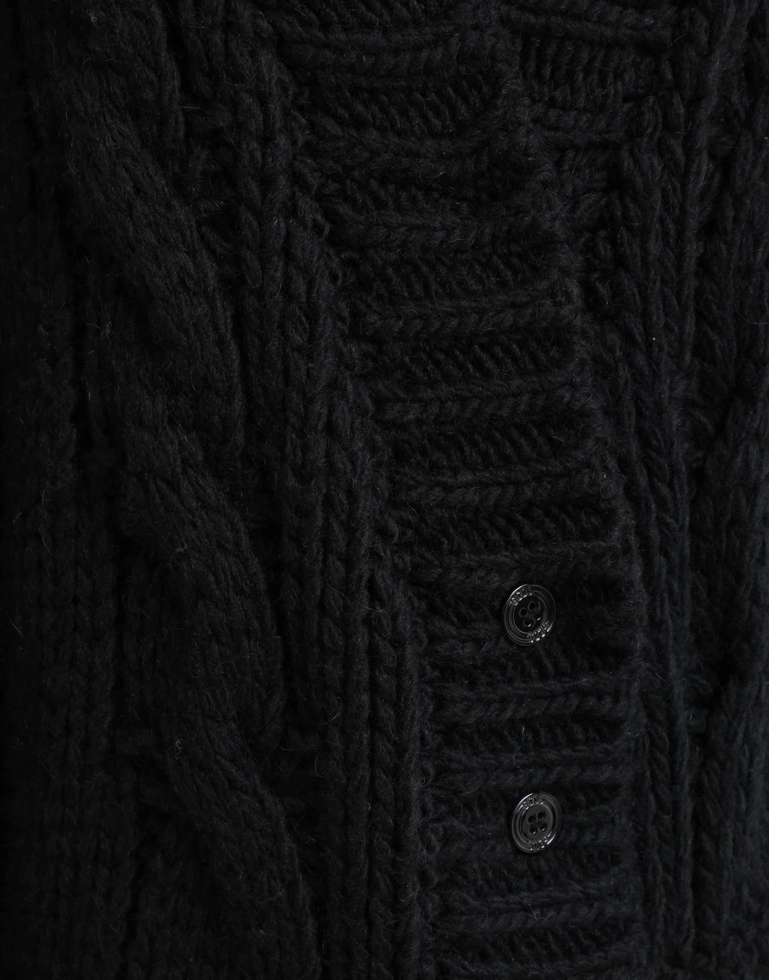 knitted, heavy-weight knit, no appliqués, solid color, v-neck, long sleeves, button closing, no pockets