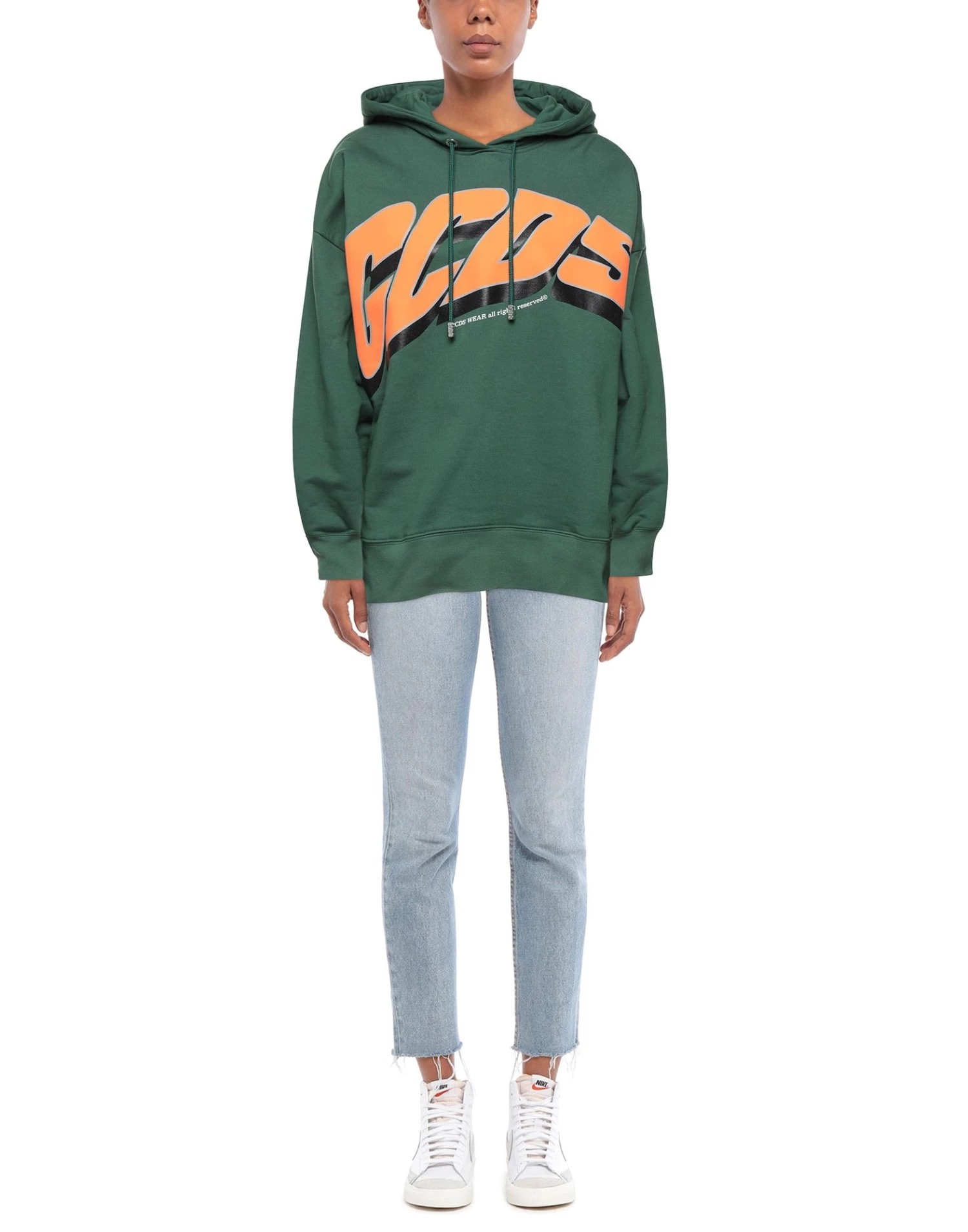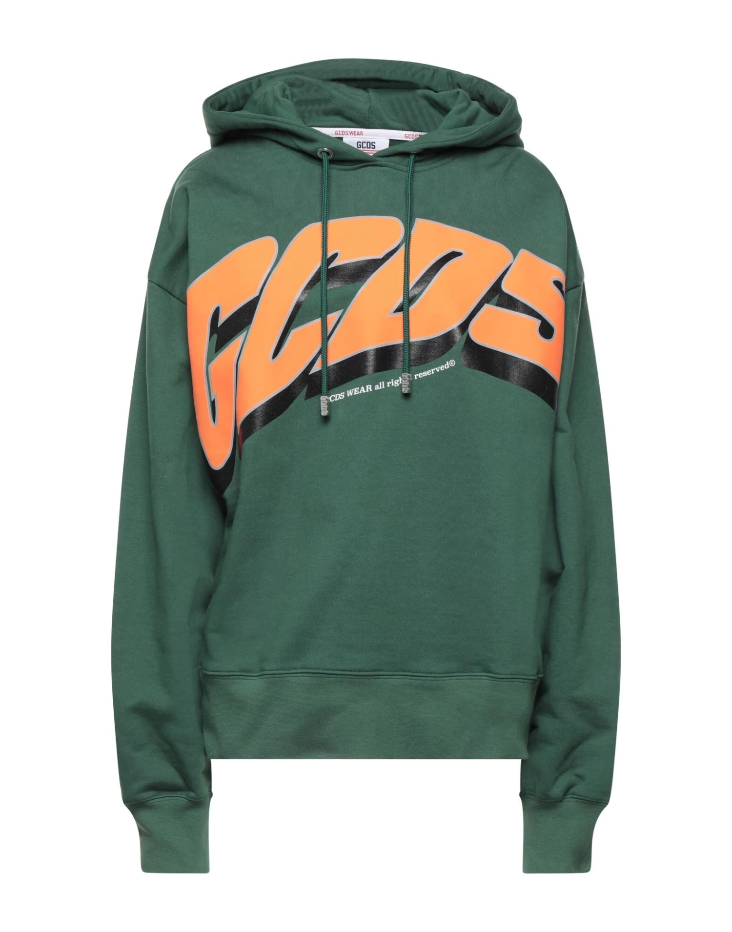 sweatshirt fleece, brand logo, solid color with print, hooded collar, long sleeves, fleece lining, no pockets