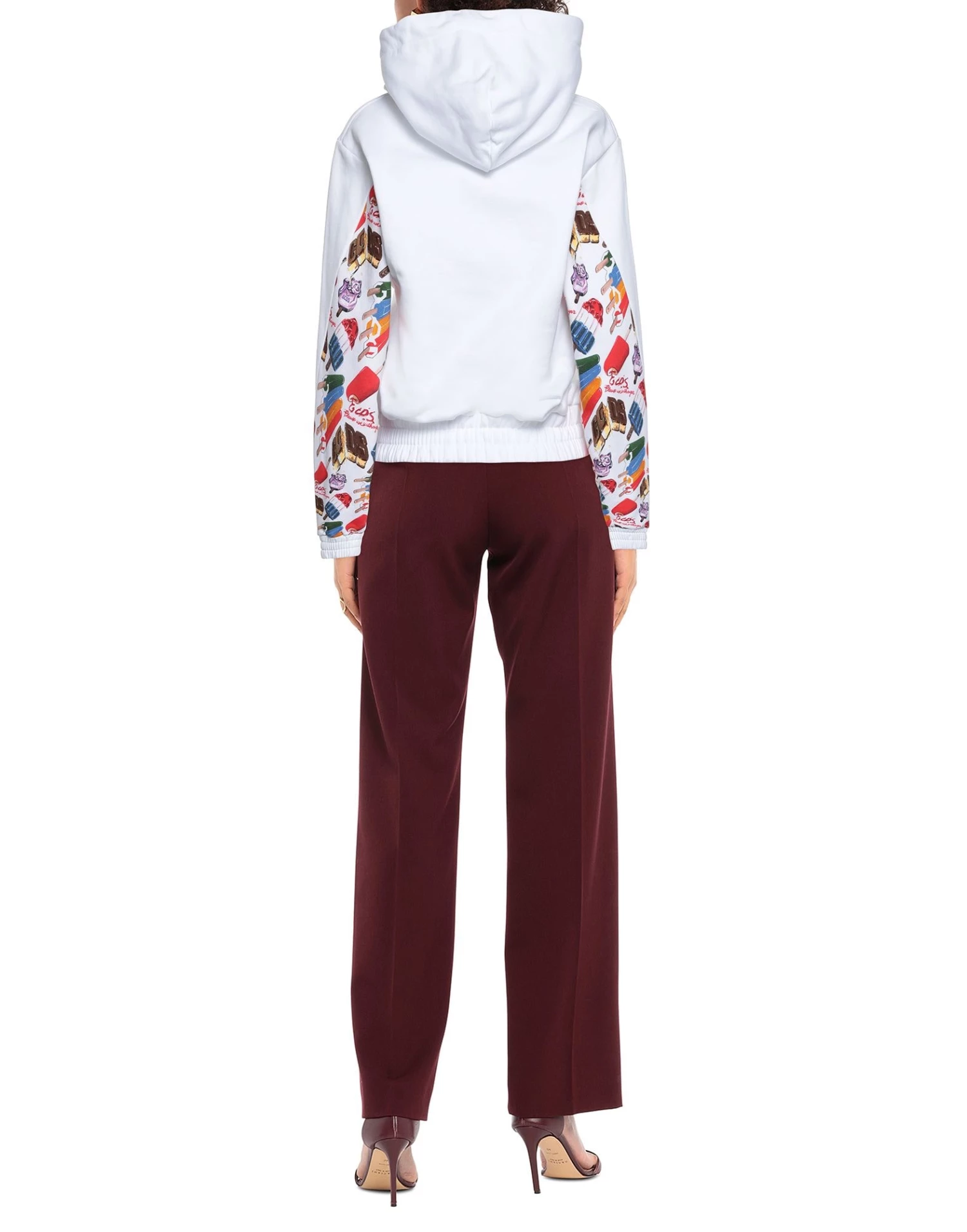 sweatshirt fleece, brand logo, solid color with print, hooded collar, long sleeves, no pockets, fleece interior