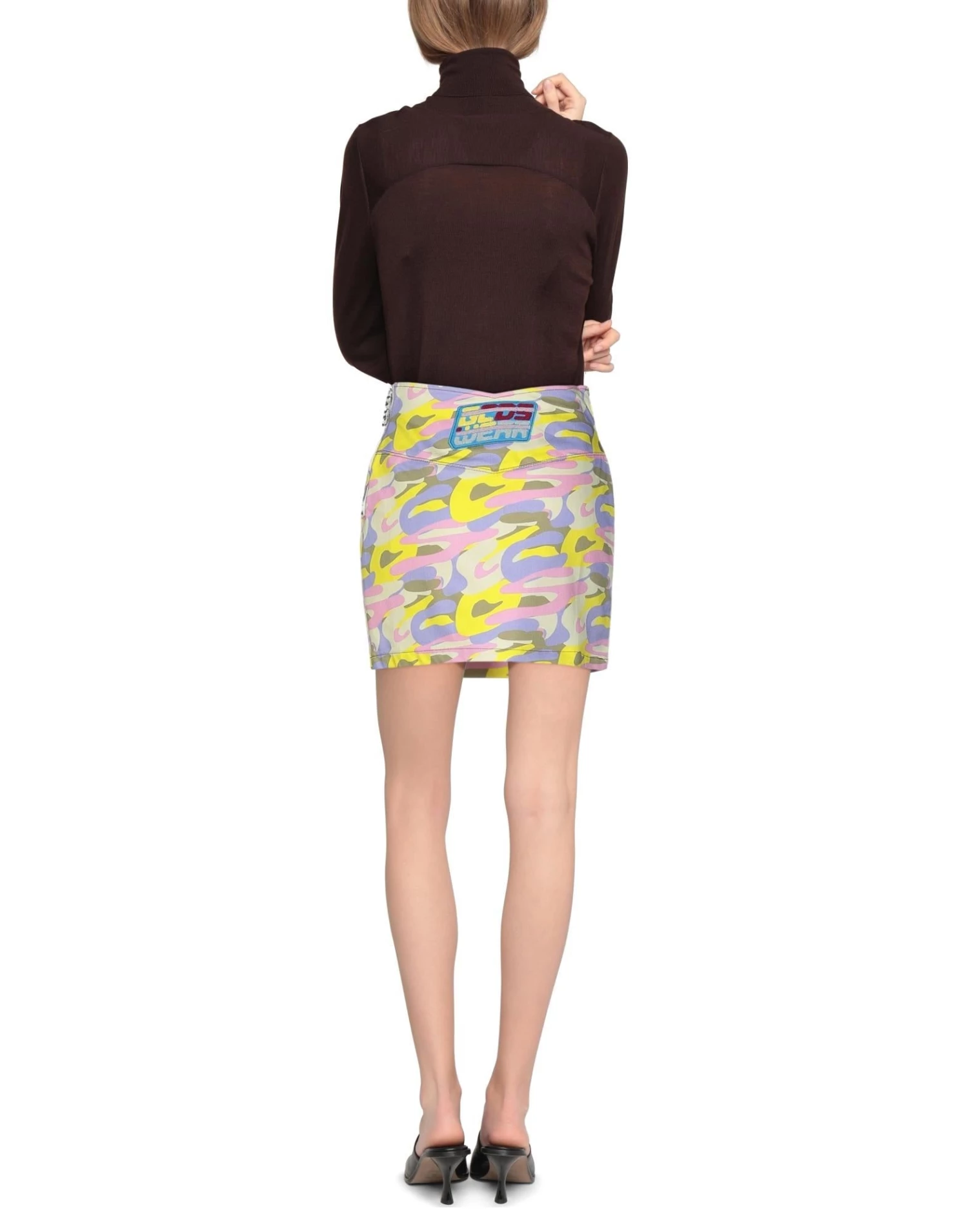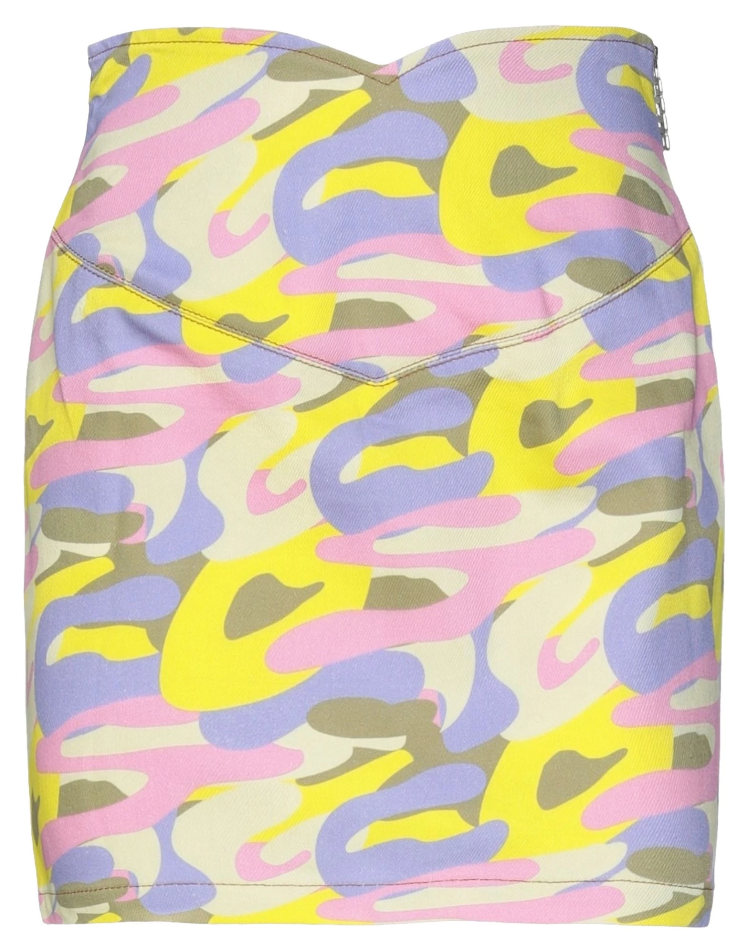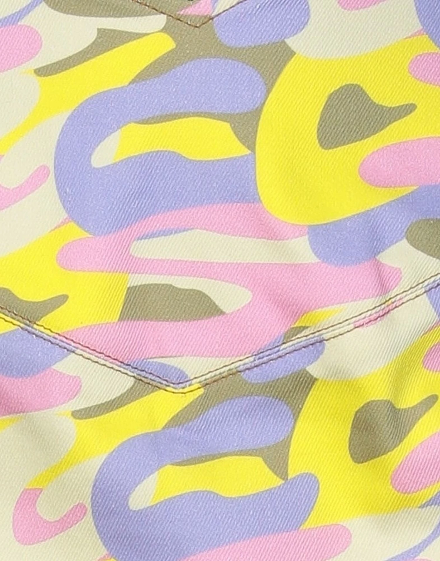 denim, contrasting applications, brand logo, camouflage, zipper closure, no pockets