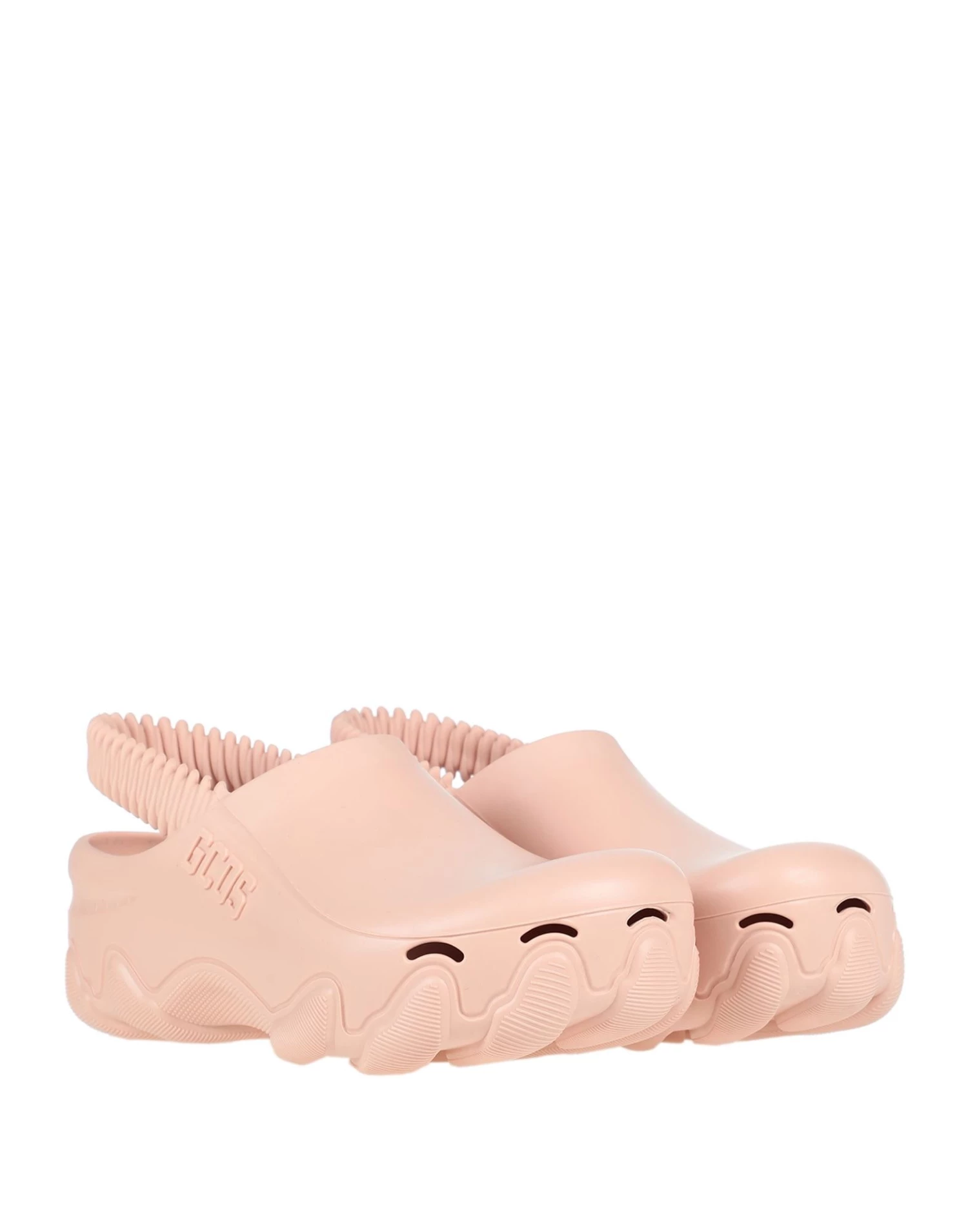 rubber lining, rubber sole, round toeline, solid color, brand logo, flat